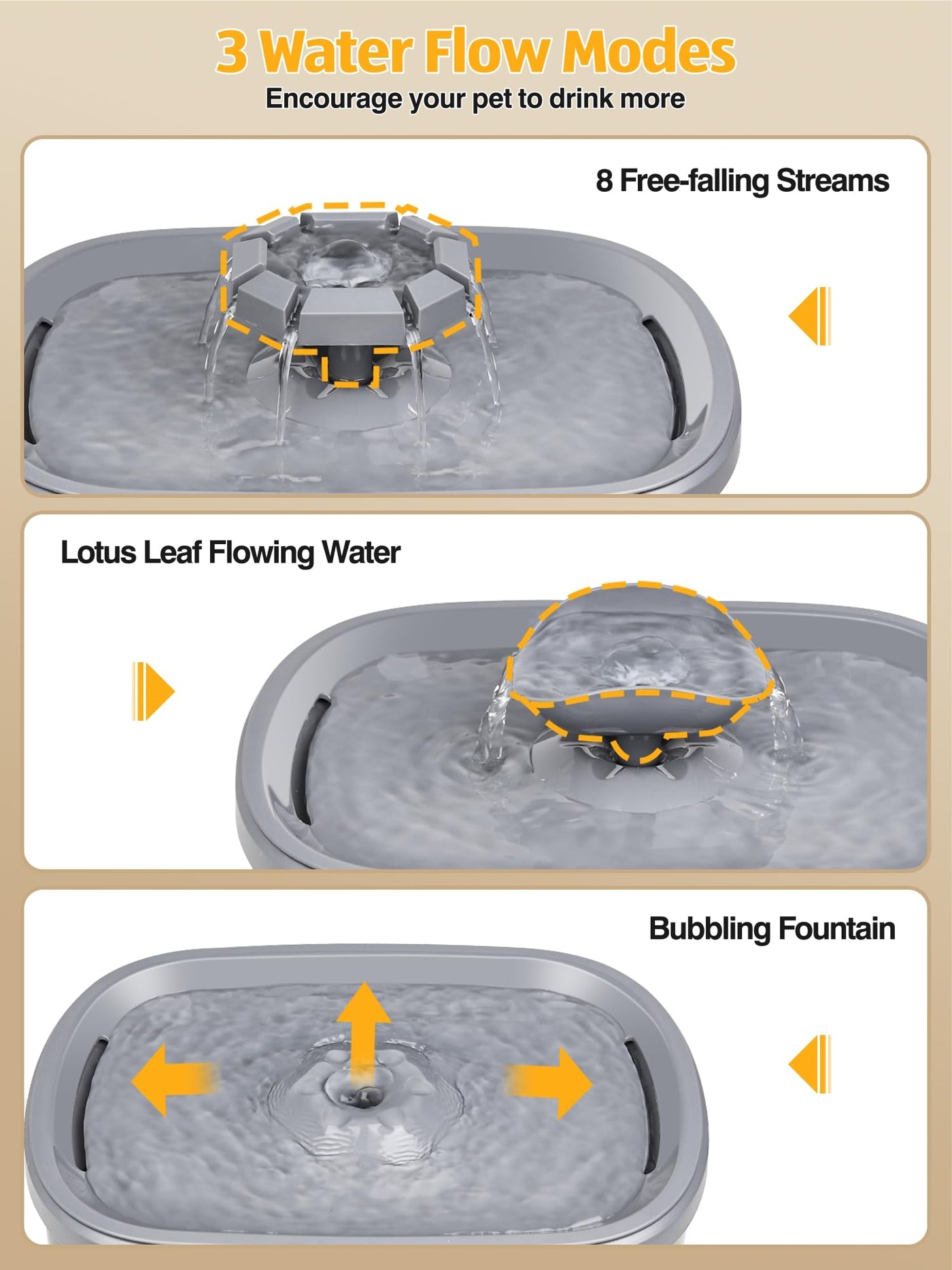 ?? This pet water fountain is both fit for cats and dogs. Considering the drinking needs of large dogs, our dog water fountain is designed with a large capacity, 9.5L 2.5GAL large capacity reduces time of water filling. Choose the best rated cat water fountain for your pet!