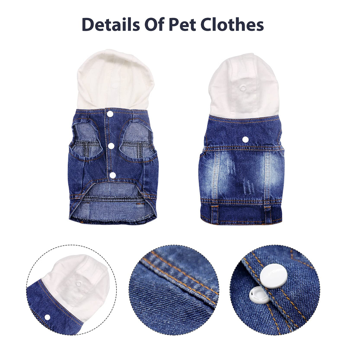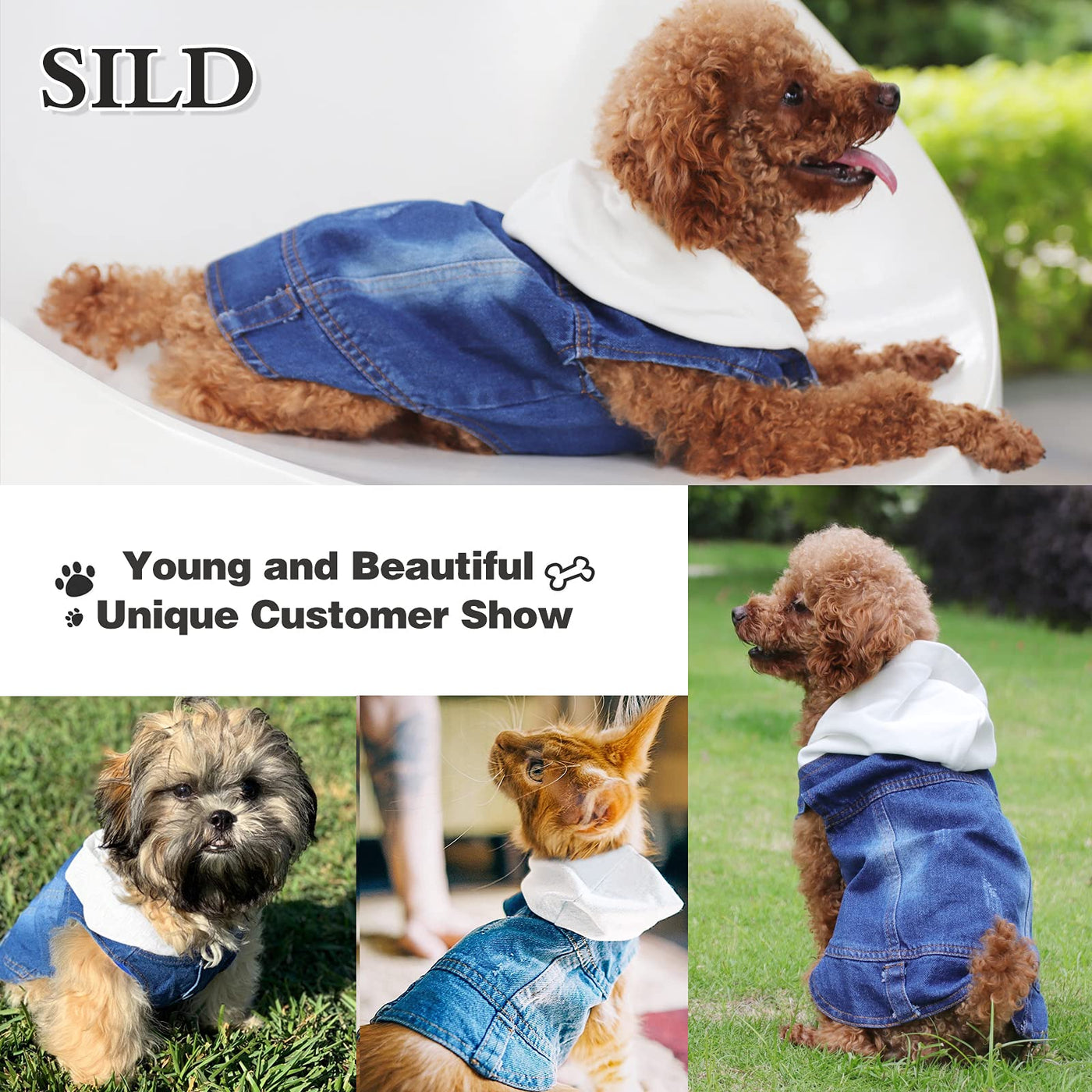 Sild Pet Clothes Dog Jeans Jacket Cool Blue Denim Coat Small Medium Dogs Lapel Vests Classic Hoodies Puppy Blue Vintage Washed Clothes (White,S)