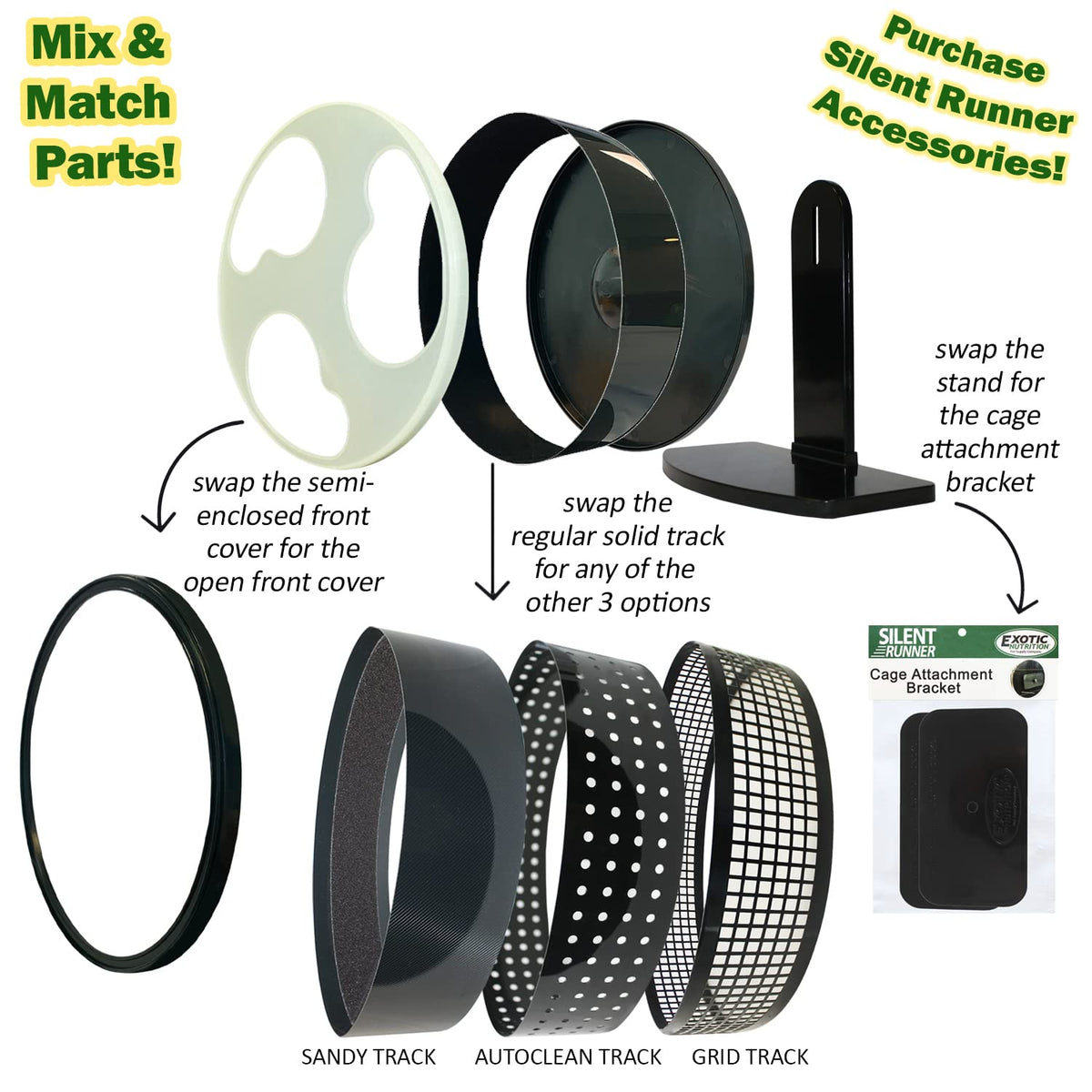 Exotic Nutrition'S Silent Runner Glow Wheel 12' Regular Is The Most Innovative Wheel On The Market For Its Safety Features And Whisper-Silent Spin. The Autoclean Track Makes Cleaning A Breeze By Allowing Debris To Fall Through The Holes In The Track.Size: 12' Wheel Diameter, 3.5' Wide Black Track, 4' Diameter Openings, 13.5' Tall On Standfeatures:? Safe - Axle-Free Construction Prevents Fur/Tail Entanglement, Pet Wrap-A-Round, Curvature Of The Spine, And Other Injuries.&Nbsp;? Quiet - Whisper-Silent Spin Using Dual-Ball Bearing Technology.&Nbsp;? Practical - Wheel Completely Disassembles For Easy Cleaning, No Nooks For Feces To Hide In.&Nbsp;? Secure - Designed With A Front Plate For Safety And Containment, With Natural Bean-Shaped Openings.? Convenient - Autoclean Track Is An Easy Way To Keep Feces And Debris From Building Up On The Wheel? Effective - Increases Ventilation &Amp; Decreases Time Spent Cleaning The Wheel? Easy - Simply Install The Autoclean Track In Place Of The Regular Track, It Takes Less Than A Minute, And The Wheel Will Stay Cleaner Longer**Please Note, Front Plate Will Appear Grey/Translucent On Arrival. Like All Glow-In-The-Dark Items, The Front Plate Needs To Sit In A Lit Room For A Few Hours For It To Glow. It Will Absorb Light During The Day Then Glow In Complete Darkness At Night.