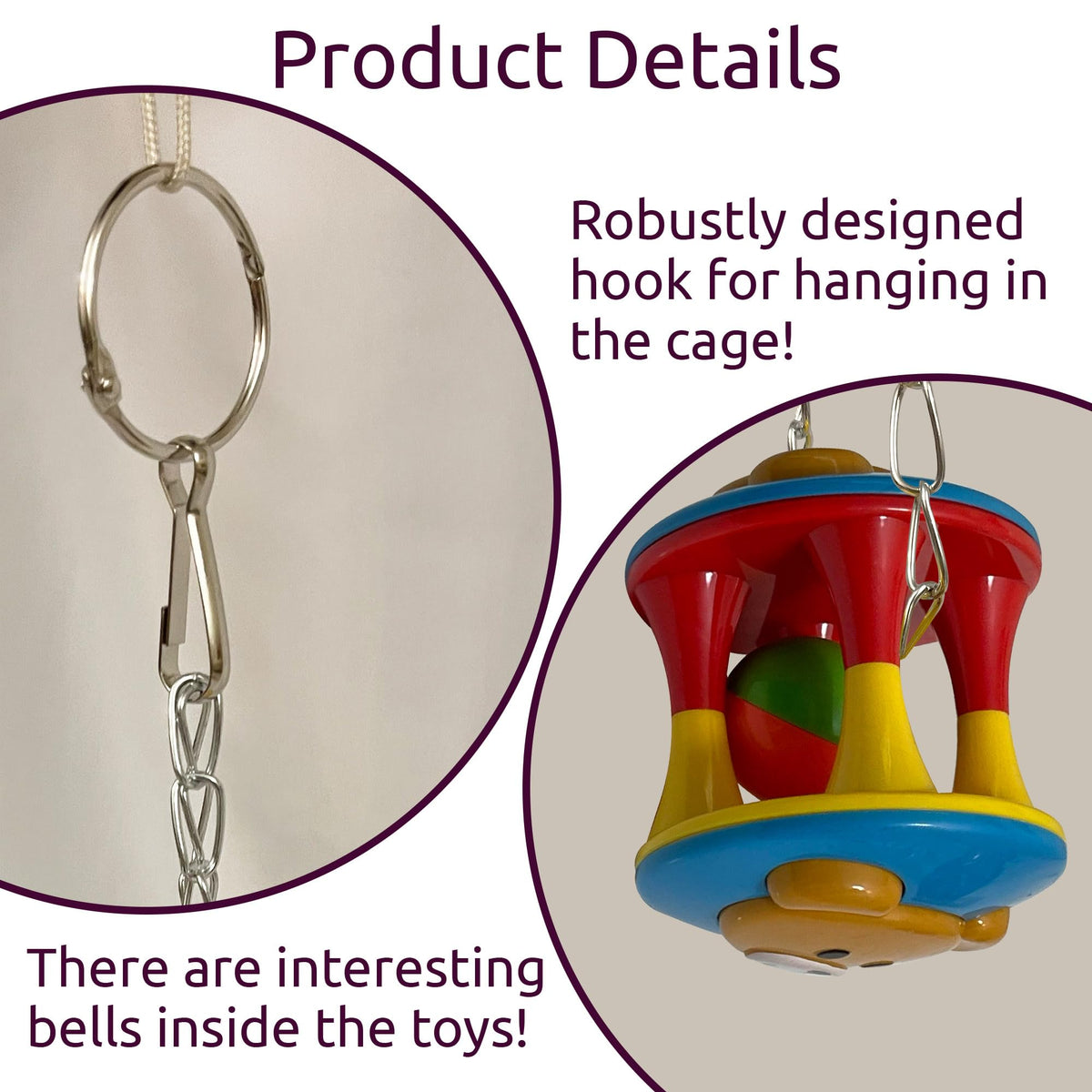 Safe & Durable Matterial: Simena Parrot Bell Ball Set Of 3 Is Made Of Bpa-Free Plastic Which Is Durable And Safe For Pet Birds. Vivivid Colors: Simena Bird Toy Ball Is Surely Attractive With Its Vivid Colors And It Also Stimulates Your Bird With Its Bell Sound. Durable Metal Strings: Simena Parakeet Toy Is Attached To The Bird Cage Via Strong Clips. Strong Metal Strings Make It Durable Against Even Most Aggressive Biters. Entertaining: Your Clever Bird Will Spend Hours Of Time Trying To Get The Bells Out Of Balls. This Helps Keeping Them Entertained And Prevents Stress. Risk Free Purchase: Simena Is A Proud Us Brand And We Are Proud Of Our Customers' Satisfaction. We Offer Free Replacement If You Have Any Issues With Our Products.