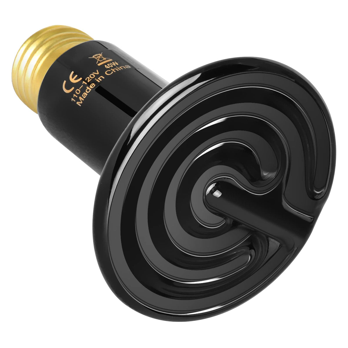 Simple Deluxe Ceramic Heat Emitter Bulb Is Perfect For Reptile And Amphibian Terrariums.Package Includes: 1-Pack 40W Reptile Heat Bulb.Note:1. Bulb Surface Temperature Is Too High, Do Not Touch During It Works.2. Before Remove It From Fixture, Please Allow At Least 1 Hour For Cool To Avoid Scald.3. Accidents May Happen Due To Improper Operation So Please Use It In A Right Way And Avoid Using In Damp Environment.4. Please Adjust The Distance Between The Lamp And The Pets, At Least 35Cm.5. Please Away From Combustible Or Explosive Materials.