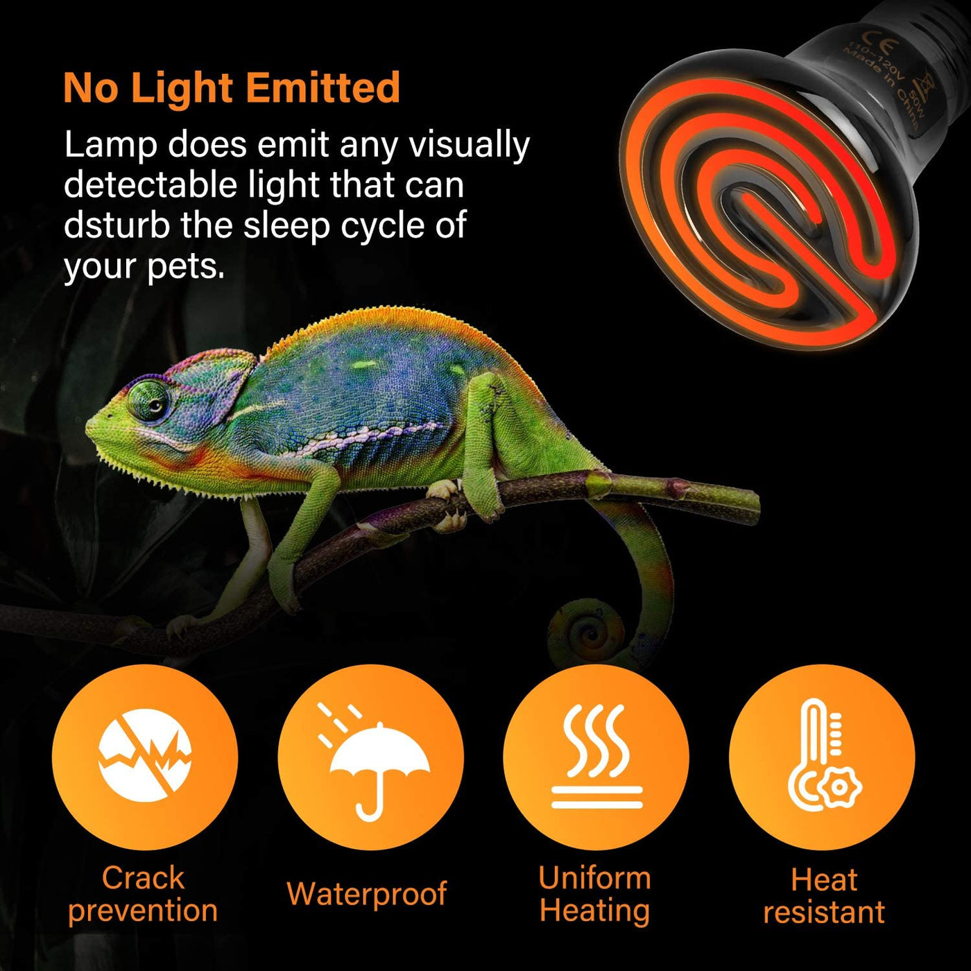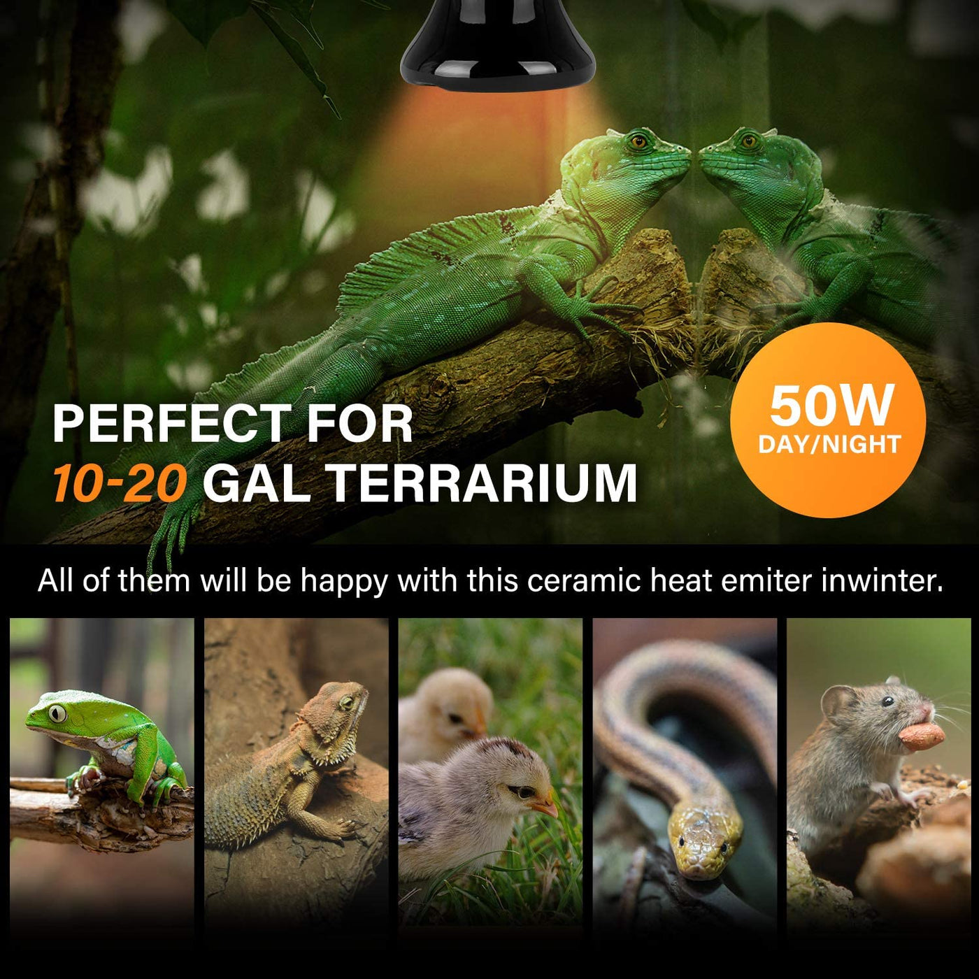 Simple Deluxe 50W 4-Pack Mini Ceramic Heat Emitter Reptile Heat Lamp Bulb No Light Emitting Brooder Coop Heater for Amphibian Pet & Incubating Chicken, Black