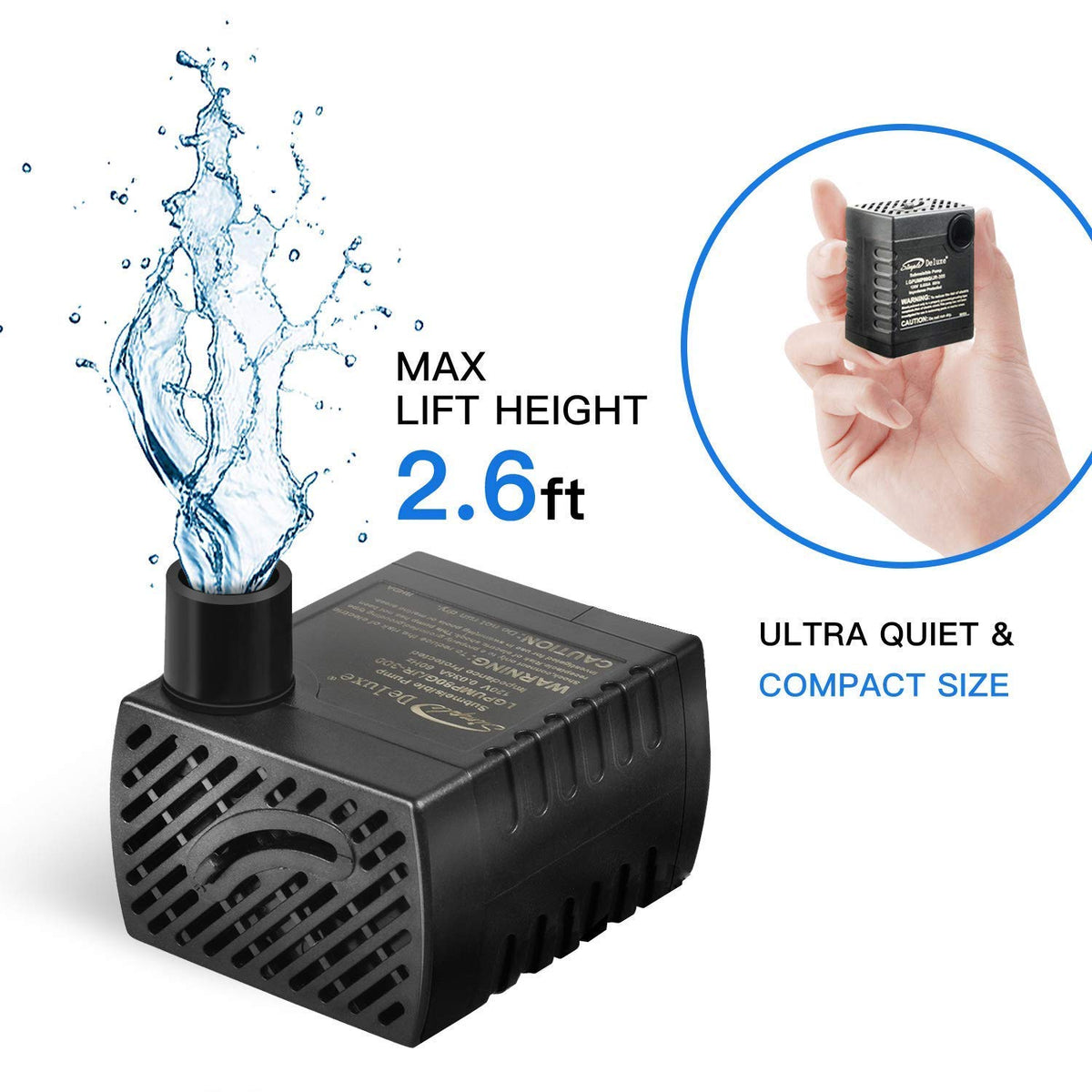 Versatile: Circulate and aerate the water making it more attractive to your fish or turtles. This submersible pump is perfect for aquarium fountains spout and hydroponic systems.