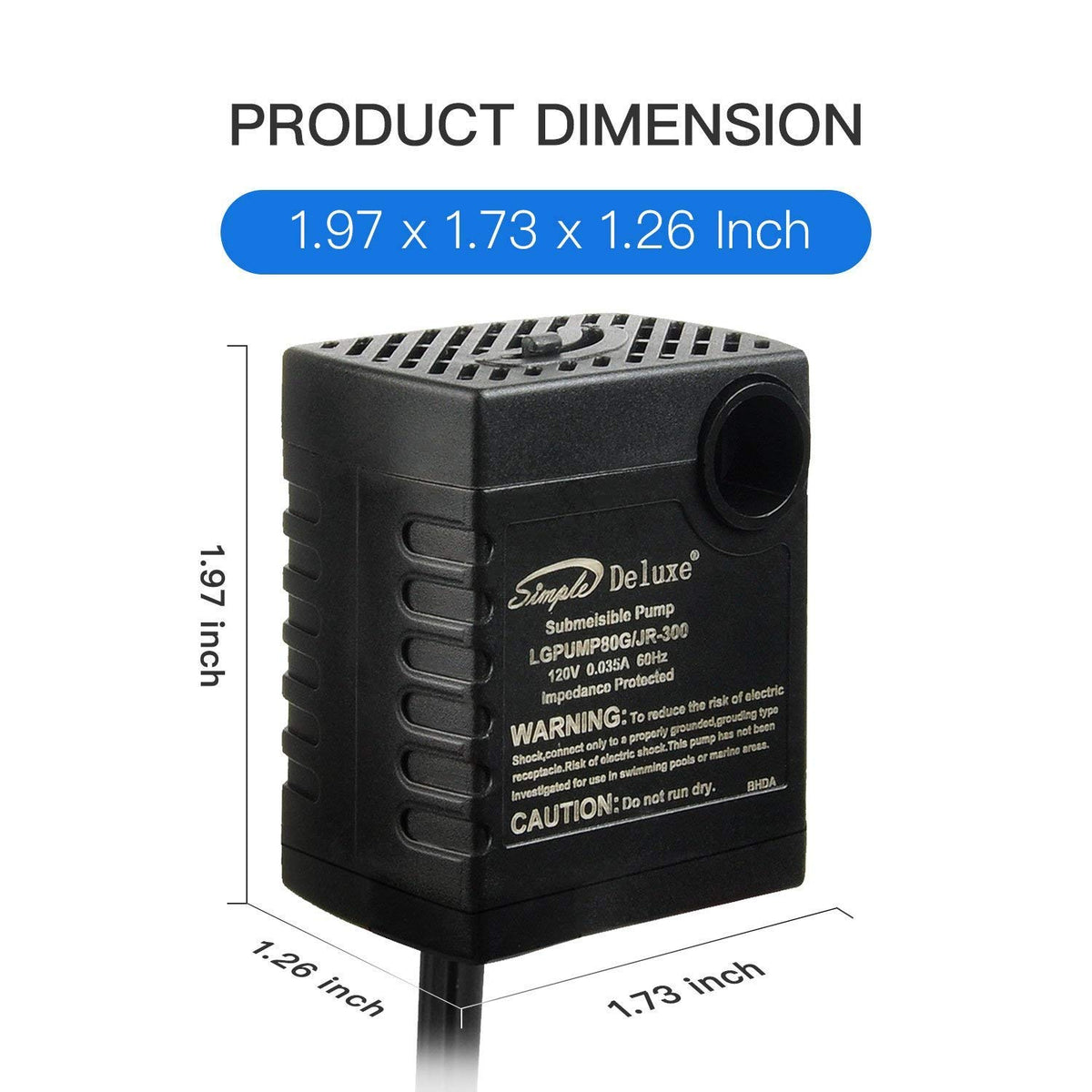 Simple Deluxe 80 Gph 3.6W Submersible Pump With Adjustable Intake & 6' Waterproof Cord For Fish Tank, Hydroponics, Fountains, Ponds, Statuary, Aquariums, Black