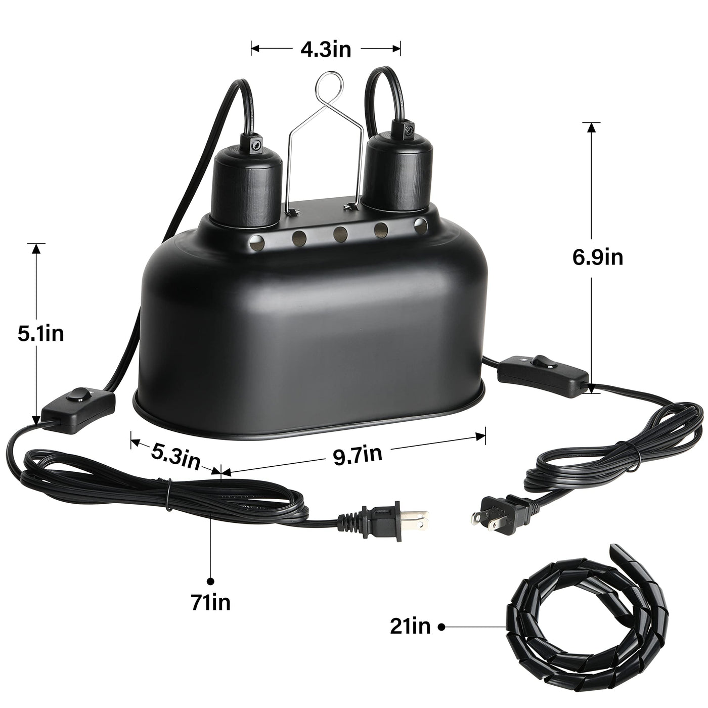 Simple Deluxe Dual Dome Reptile Light Fixture With Separate Switches, Fits Max 100W Reptile Heat Lamp/Uvb Light, For Amphibians