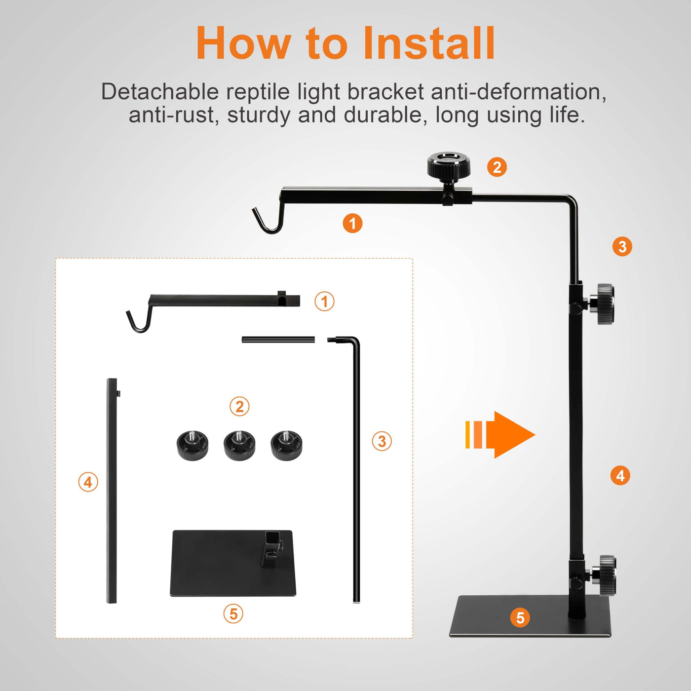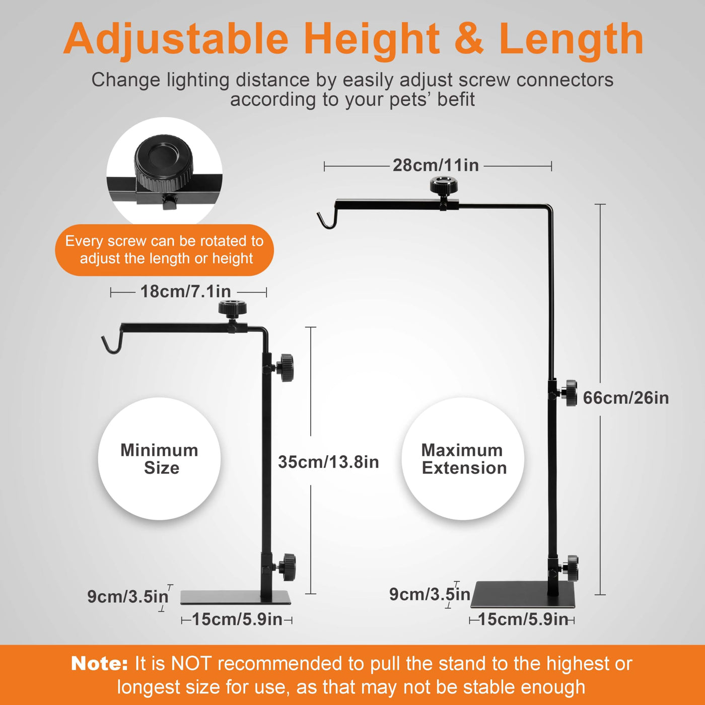 Simple Deluxe Reptile Adjustable Lamp Stand Metal Floor Light Holder Lamp-Support Bracket Basking Lamp-Holder, For Glass Terrari