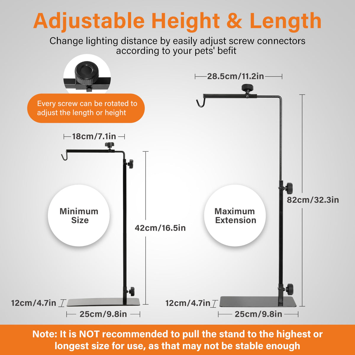 Simple Deluxe Reptile Lamp Stand, Adjustable 16''-32'' Floor Light Holder Stand Metal Bracket For Reptile Glass Terrarium Heating Light, M: 32.3 X 11.2 Inch, Black