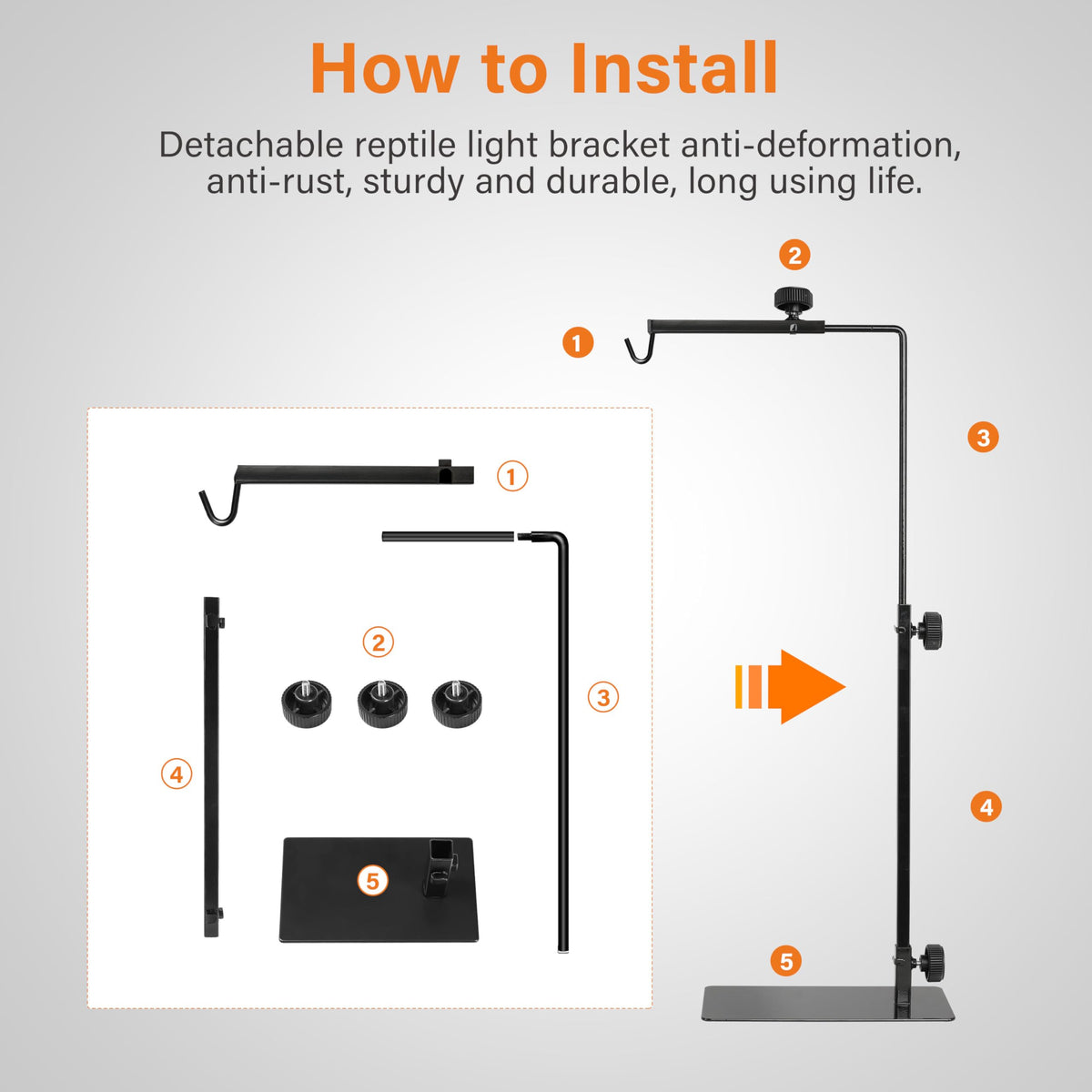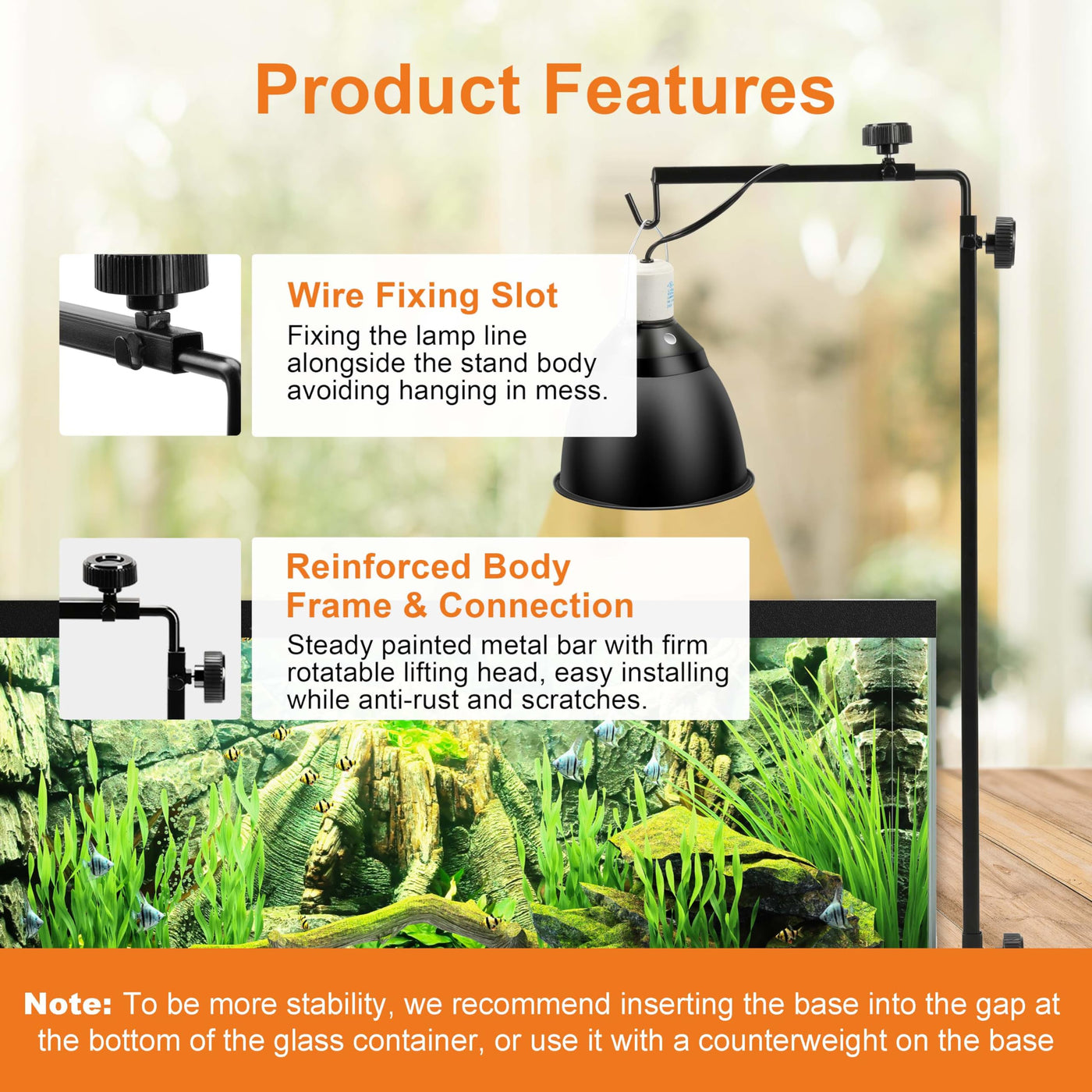 Simple Deluxe Reptile Lamp Stand, Adjustable 16''-32'' Floor Light Holder Stand Metal Bracket For Reptile Glass Terrarium Heatin