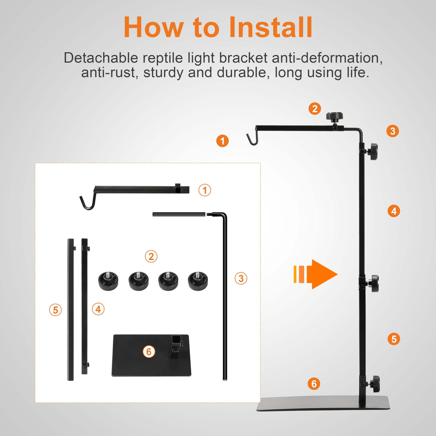 Simple Deluxe Reptile Light Stand Adjustable 15-36.6 inch Floor Lamp Holder, Metal Bracket for Reptile Tank & Terrarium Heating