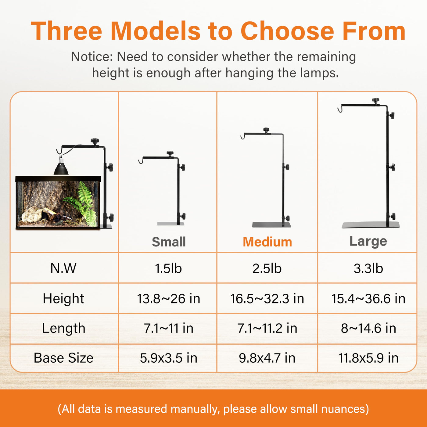Simple Deluxe Reptile Light Stand Adjustable 16-32 inch Floor Lamp Holder, Metal Bracket for Reptile Tank & Terrarium Heating Li