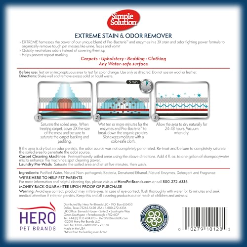 Simple Solution Extreme Pet Stain And Odor Remover | Enzymatic Cleaner With 3X Pro-Bacteria Cleaning Power | 1 Gallon , 128 Fl Oz (Pack Of 1)