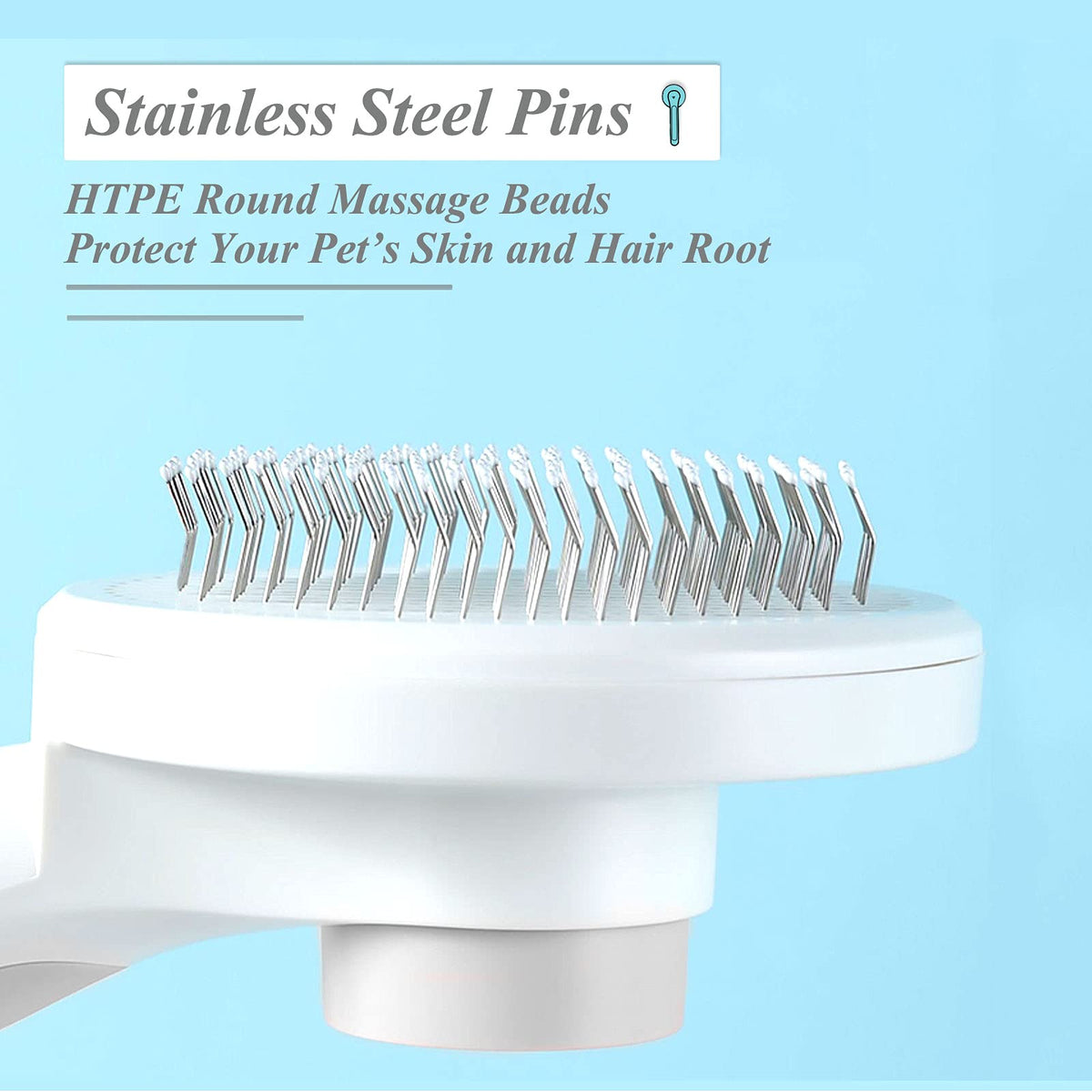 All hair types Dogs & cats Slicker Brush - Perfect Shedding and grooming brush for short and long hair pets gently removes Loose Undercoat Mats and eliminates Knots Tangles Dander and trapped Dirt gives your pet a clean shiny and health coat Easy use and One Button Self cleaning - Simply press the button on the back after brushing your pets to release all loose hairs from brush Self cleaning design makes it easily to push out and peel off all hair for next time Whole Body waterproof no worries of dirt and small hair keep it dry and clean comfortable and Safe for your Pets - The shedding brushes are stainless steel fine bent wire Bristles with round massage beads head is designed for penetrating deep into the coat and brush the loose hair without hurting your pets skin and hair root Massages for Healthy & Shiny coat - The round massage beads grooms and massages for shiny and health coat Also increasing blood circulation and leaves your pets coat soft and smooth Pets are loved to being brushed they will feel great when brushing Unique anti-slip and Durable Design - The Slicker brush is especially designed with high quality material unique fashion outlook and anti-slip handle to prevents hand and wrist Makes both of you and your pets feel comfortable when brushing Please feel free to contact us if you have any questions our team will provide your a good customer services and shopping experience