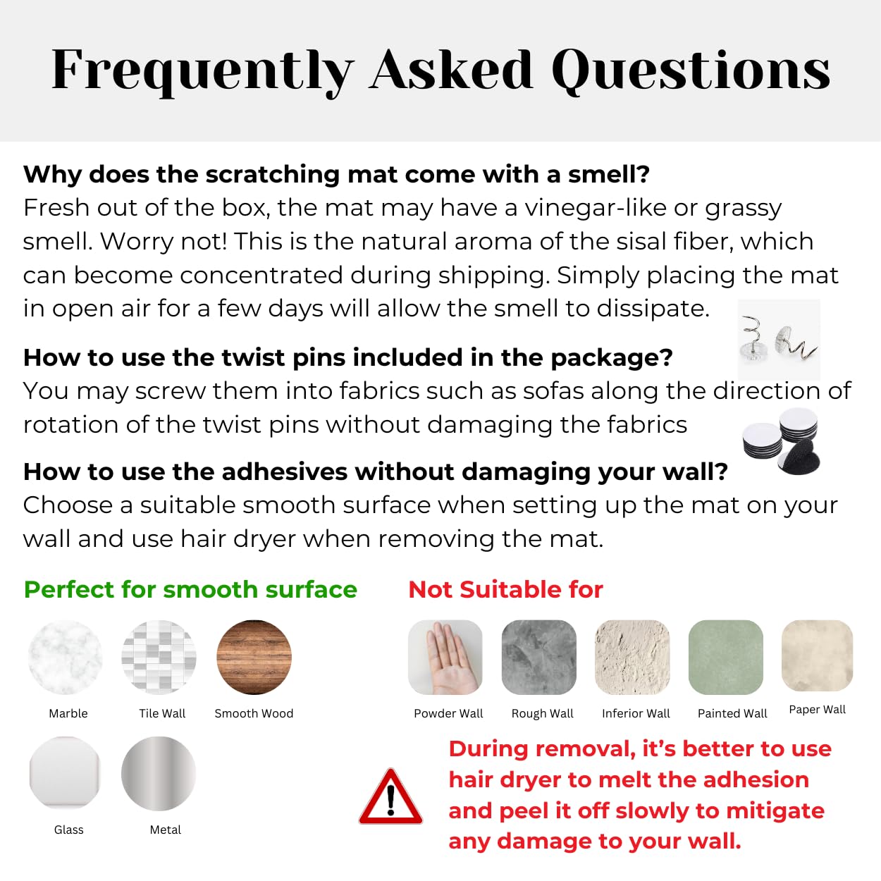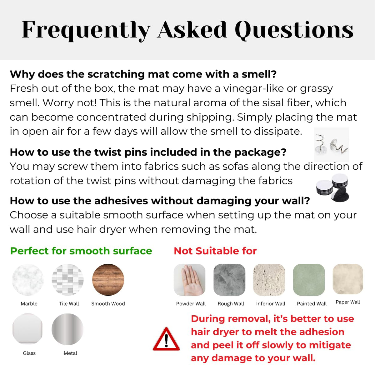 Introducing Our New 4-In-1 (Wall, Couch, Corner, Floor) Sisal Cat Scratcher Mat - The Perfect Addition To Your Home Decor And Your Cat'S Playtime Routine! Our Scratcher Mat Seamlessly Blends Into Your Living Space, Adding An Attractive And Functional Space For Your Cat To Play, Scratch, And Rest, While Protecting Your Furniture, Floor And Wall. Choose From A Variety Of Wall Art Designs To Match Your Personal Style And Elevate Your Home Decor. Built To Last, Our Scratcher Mat Is Made From High-Quality Natural Sisal Fibers That Provide A Long-Lasting And Durable Scratching Surface For Your Cat. It'S Versatile And Flexible, Allowing You To Use It On The Floor, Carpet, Or Even Put It Up On The Wall For Optimal Stretching And Scratching. Our Scratcher Mat Is Designed To Accommodate Your Cat'S Needs, Providing Them With A Comfortable And Convenient Scratching Surface. Say Goodbye To Shedding And Mess With Our Shedding-Resistant Cat Scratcher Mat. Made From Natural Sisal Material, It Provides A Safe And Comfortable Scratching Surface That Doesn'T Create A Mess. Keep Your Home Looking And Feeling Fresh With Our Shedding-Resistant Cat Scratcher Mat. We Care About Your Cat'S Health And The Environment, Which Is Why Our Cat Scratcher Mat Is Made From Natural Sisal Fibers And Print Ink Free From Harsh Chemicals And Toxins. Our Cat Scratcher Mat Is Sustainable And Safe For Both Your Cat And The Environment. Invest In Our Sisal Cat Scratcher Mat Today And Give Your Furry Friend The Gift Of Playtime And Comfort, While Also Adding A Stylish Touch To Your Home Decor!