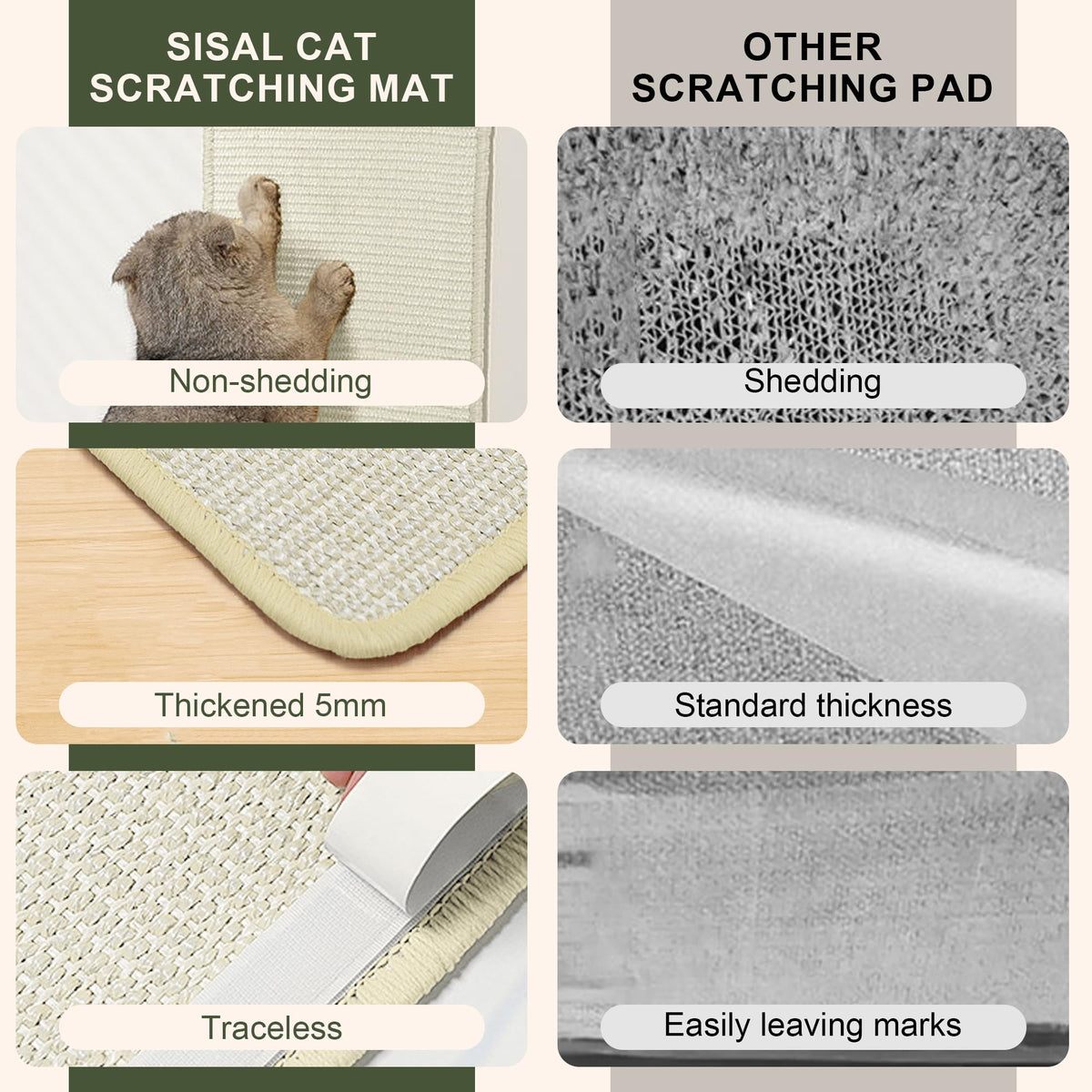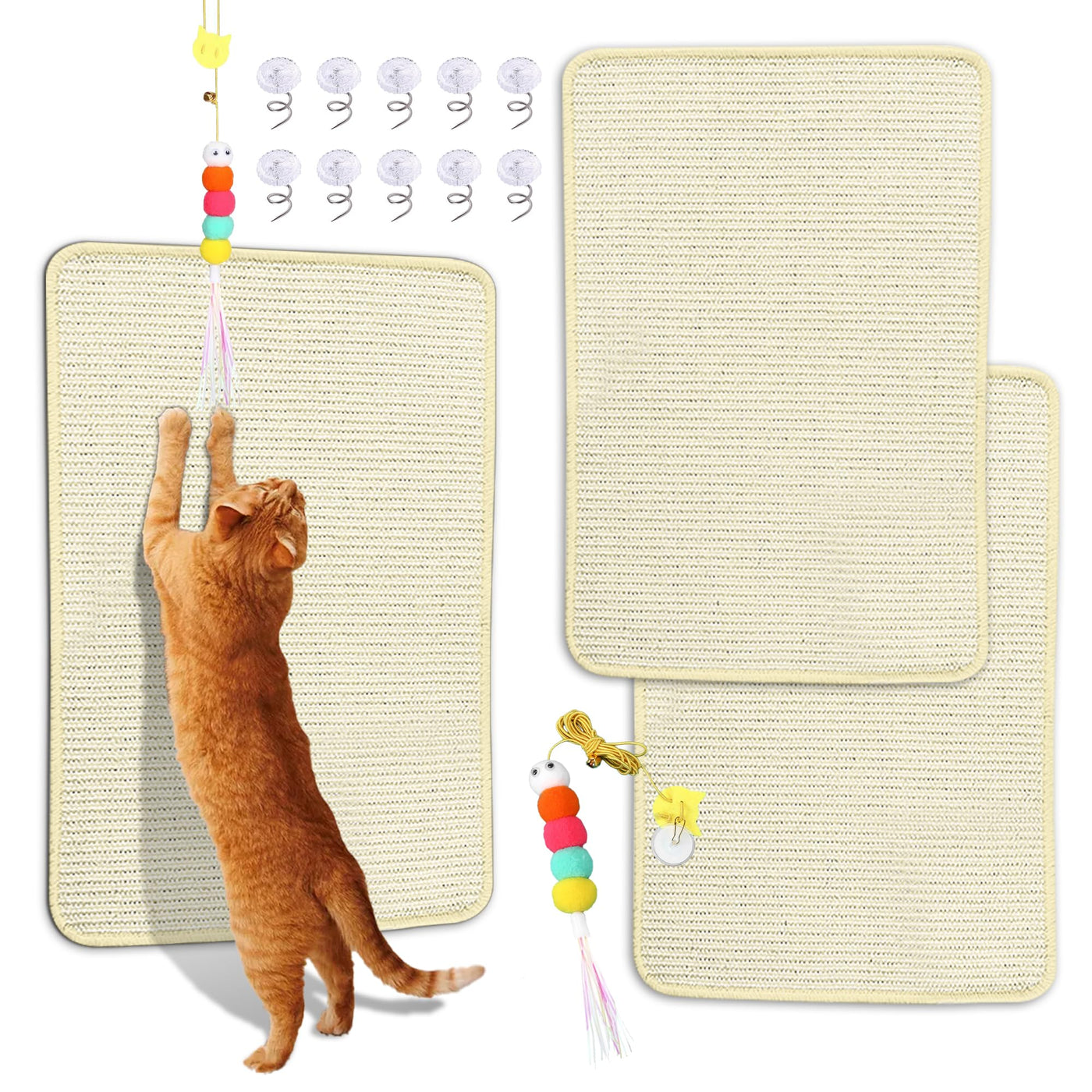 Sisal Cat Scratching Mat, 2 Packs Natural Fabric 23.6'' X 15.8'' Scratching Pad With Cute Playing Toy And Spiral Nails, Wall Scr