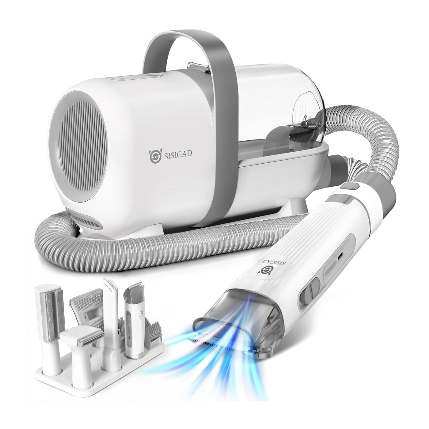 Sisigad Dog Grooming Kit,Pet Hair Vacuum,Dog Grooming & Low Noise Hair Vacuum,Professional Clippers Nail Trimmer Grinder,7 Pet G