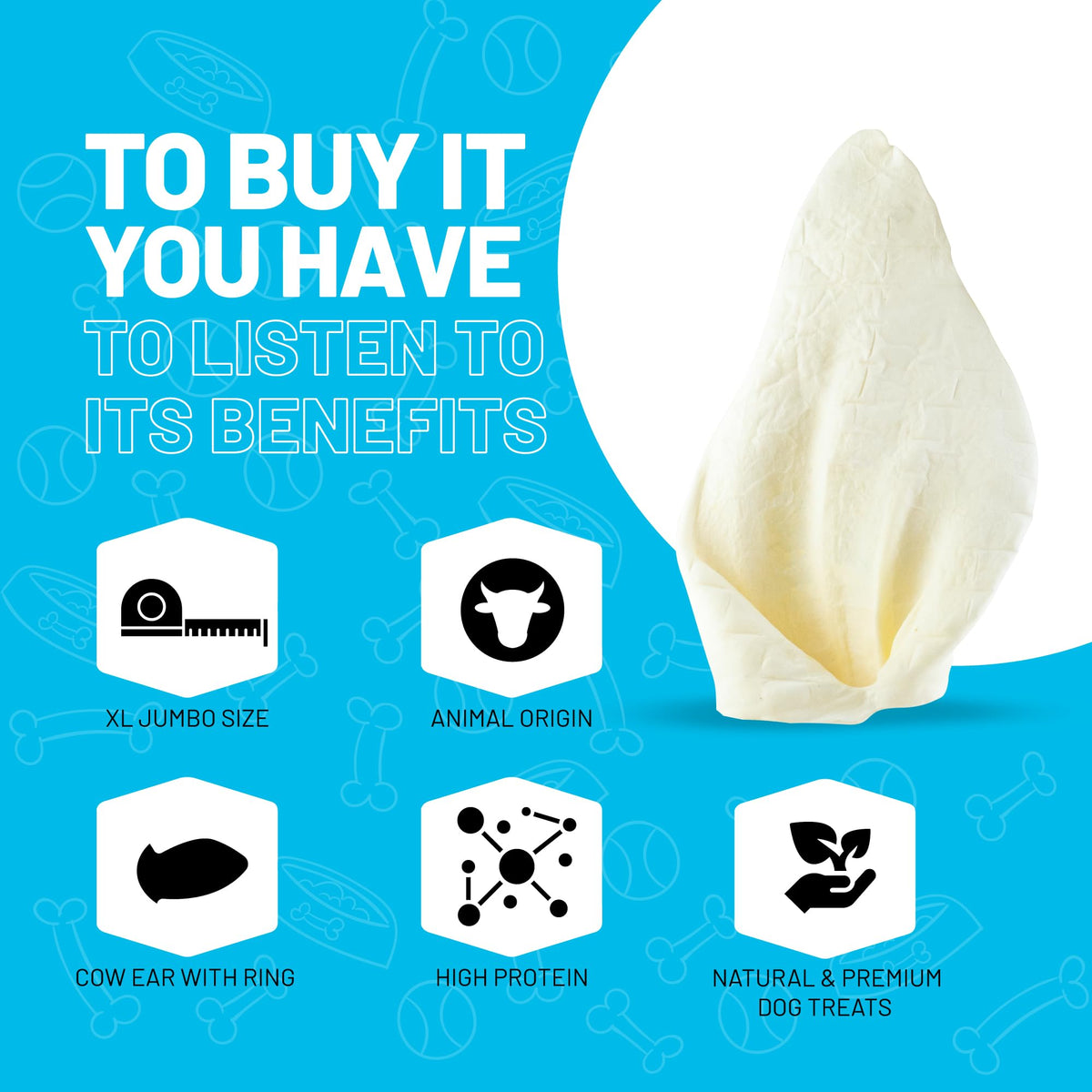 Natural Cow Ears - the ultimate choice for dog owners seeking a premium, all-natural chew. Crafted with care using our unique craft production methods, these large-sized cow ear dog chews are the epitome of quality and taste. Made from real cow ears sourced from Brazil and proudly manufactured in the USA, our Natural Cow Ears meet the highest standards of excellence. Whether your dog is a large breed or an extra-large furry friend, these chews are perfect for satisfying their chewing instincts. Not only do our Natural Cow Ears provide a long-lasting and enjoyable chewing experience, but they also offer dental benefits. The natural chewing action helps promote dental health by reducing plaque and tartar buildup, ensuring your dogs oral hygiene stays in top shape. To cater to different preferences, we offer a variety of options, including pig ears, Sitka Farms chews, and water buffalo ears. You can choose from jumbo-sized ears, buy in bulk, or opt for individual treats, giving you the flexibility to suit your dogs needs. Choose our Natural Cow Ears for a wholesome, natural, and delicious chew that your dog will love. With our commitment to quality and variety, you can trust that youre providing the best for your furry companion.