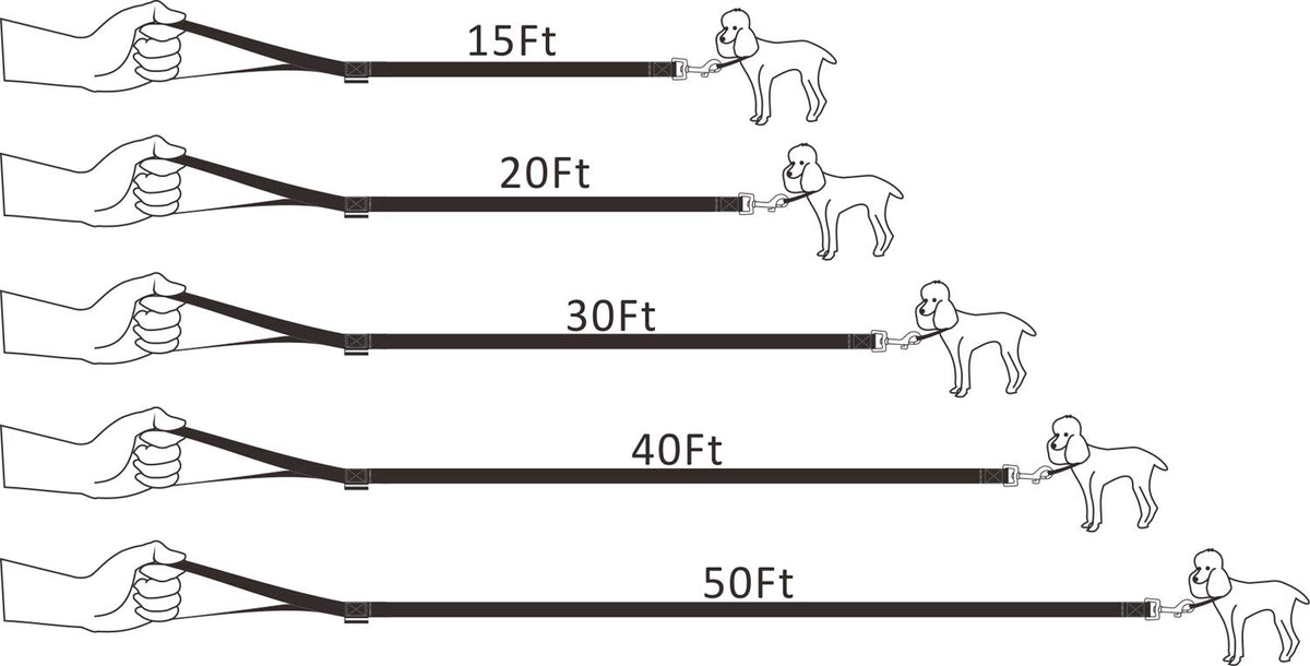Q: How does the leash help with dog training and recall?A: This training leash allows for a wider range of movement for your puppy, enabling them to hear your commands while providing a safe distance during training sessions.