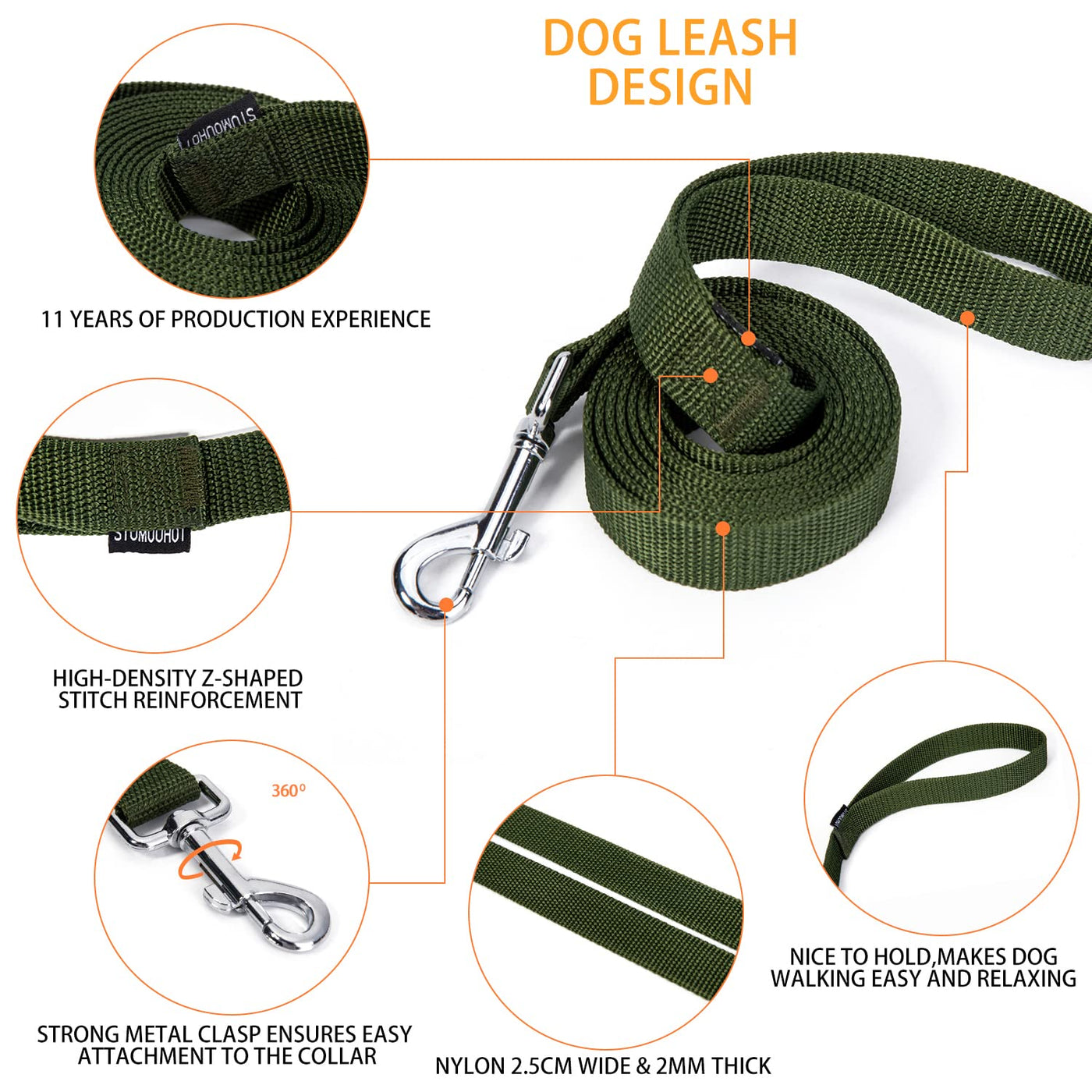 Siumouhoi Strong Durable Nylon Dog Training Leash, 1 Inch Wide Traction Rope, 6 Ft 10Ft 15Ft Long, For Small And Medium Dog (Mil