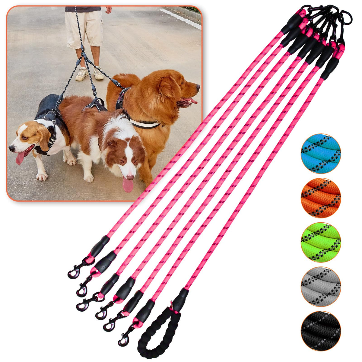 Introducing Our Innovative 6 Dog Leash, A Must-Have Tool For All Dog Owners With Multiple Four-Legged Friends. This Leash Allows You To Effortlessly Walk Up To Four Dogs At Once, Providing Convenience, Control, And Peace Of Mind. Say Goodbye To Tangled Leashes And Hello To A Stress-Free Walking Experience! Our 6 Dog Leash Is Specifically Designed To Eliminate Tangles And Knots, Ensuring A Smooth And Enjoyable Walk For Both You And Your Dogs. No More Struggling To Untangle Leashes As Your Dogs Excitedly Run In Different Directions. With Our Leash, You Can Confidently Navigate Through Your Neighborhood Or Park, Knowing That Your Pups Are Secure And Tangle-Free. Crafted From High-Quality Materials, This Leash Is Durable, Lightweight, And Built To Withstand Even The Most Energetic Dogs. The Leash Offers Four Individual Extensions, Allowing Each Dog To Have Their Own Comfortable Space While Still Remaining Connected To You. Whether You Have Small Or Larger Dogs, Our Leash Accommodates Them All, Providing Flexibility And Versatility. With Its 6-In-1 Functionality, This Leash Offers Various Configurations To Suit Your Specific Needs. Use It As A Six-Way Leash, Allowing Each Dog To Have Their Own Separate Lead. Alternatively, You Can Pair The Dogs Up Or Leash Them All Together For More Control. The Choice Is Yours! Our Leash Is Also Ideal For Training Purposes, As It Gives You The Ability To Guide And Correct The Behavior Of Each Dog Individually. Safety Is Our Top Priority, Which Is Why Our Leash Features Sturdy And Secure Clasps To Ensure That Your Dogs Remain Securely Attached. The Comfortable And Adjustable Handle Provides A Firm Grip, Reducing Strain On Your Hands And Wrists During Long Walks. Additionally, The Leash Is Reflective, Enhancing Visibility During Low-Light Conditions For Added Safety. Designed For Both Small And Large Dogs, Our 6 Dog Leash Is Suitable For Any Breed Or Size. Whether You Have Multiple Small Dogs Or A Combination Of Sizes