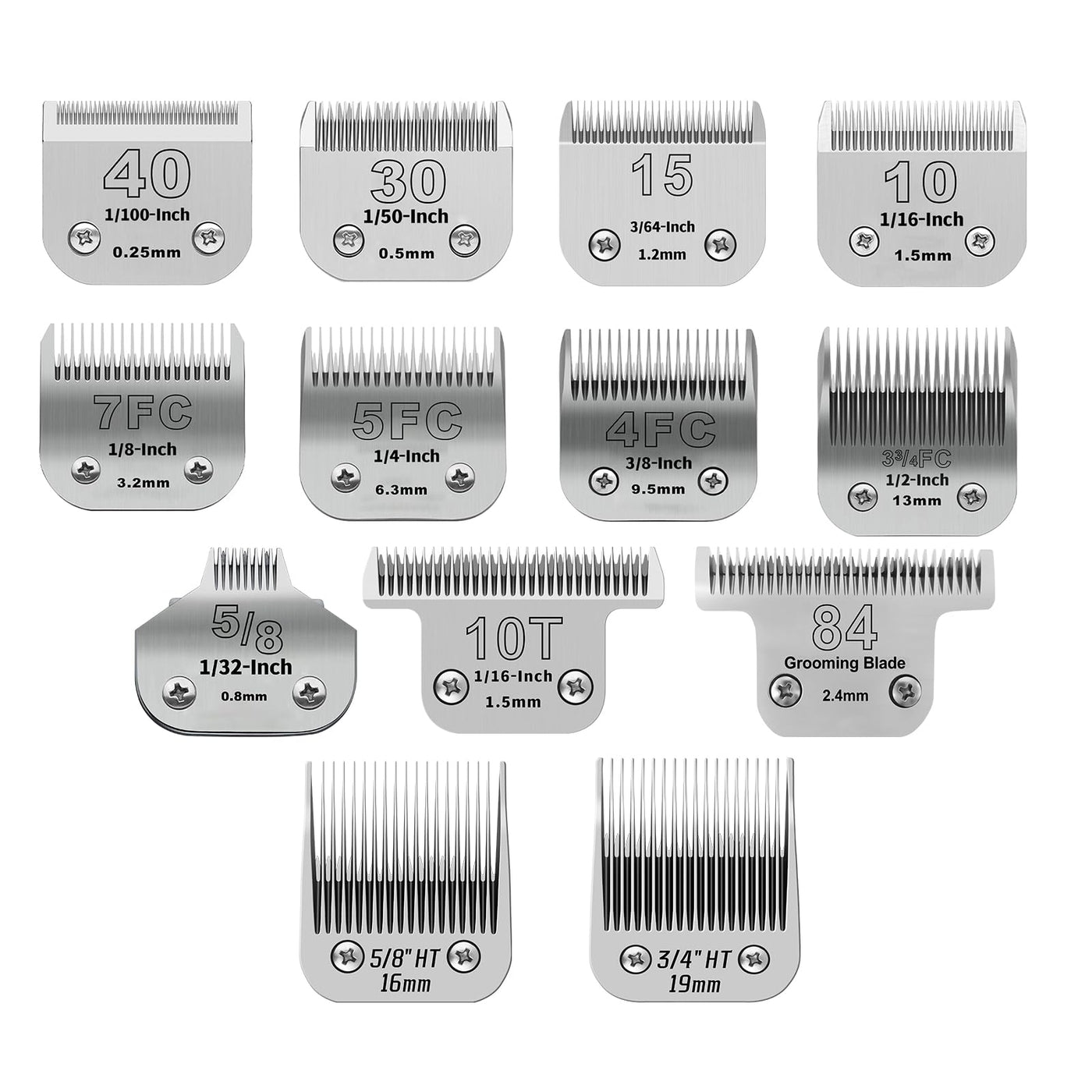 Size 40+10+30+15+7Fc+5Fc+4Fc+3Fc+5/8Ht+3/4Ht+T84+T10+5/8N Toe Blade Kit,Pet Dog Grooming Clipper Stainless Steel Blade,Compatibl
