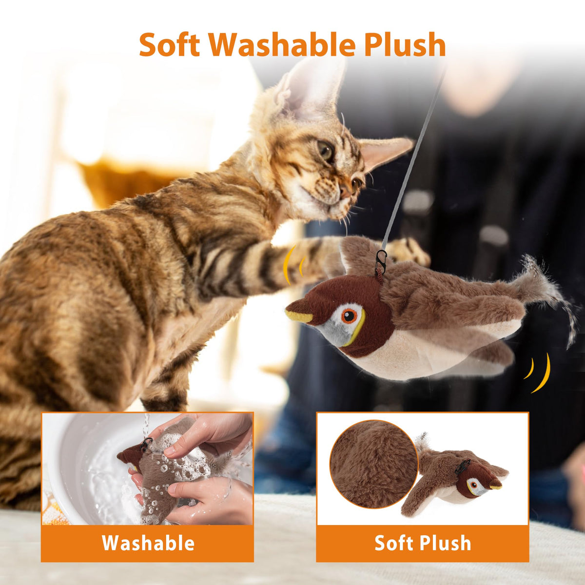 Our Flapping Bird Cat Toy Is Designed To Mimic A Real Bird, Complete With Flapping Wings And Authentic Bird Sounds, Providing Endless Entertainment For Your Curious Feline. Crafted From Soft Brown Plush And Adorned With Real Feathers, This Toy Is As Visually Appealing As It Is Fun.