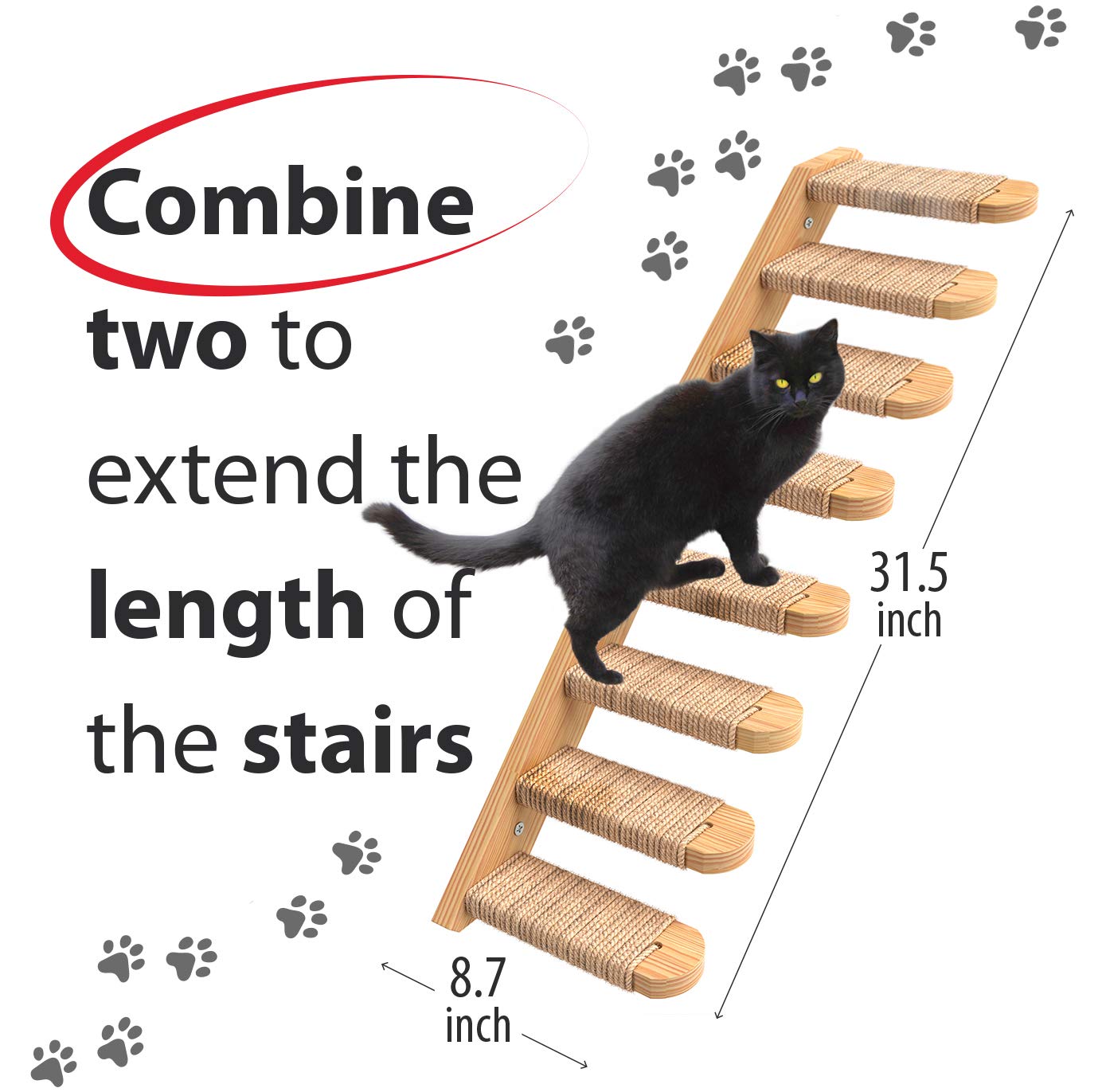 This listings direction orientation has been corrected and is no longer reverse as the initial reviews would indicate. Cats naturally love to run around and climb - it’s part of their DNA. Give them a great environment for active play in your house Skywin Cat Steps. These wall mounted cat shelves are great for climbing and even scratching. Its Jute Rope Steps provide a great cushion for your cat’s claws. Made of solid rubber wood known to be more durable than ordinary plywood, these stairs will definitely withstand the test of time and your cat’s playfulness. Its materials are also very eco friendly. The cat steps are also very easy to install and easy to match any home decor, making it a great and convenient addition to your cat’s pet supplies. You can use it alone or use a series of steps for a higher vantage point for your cat.