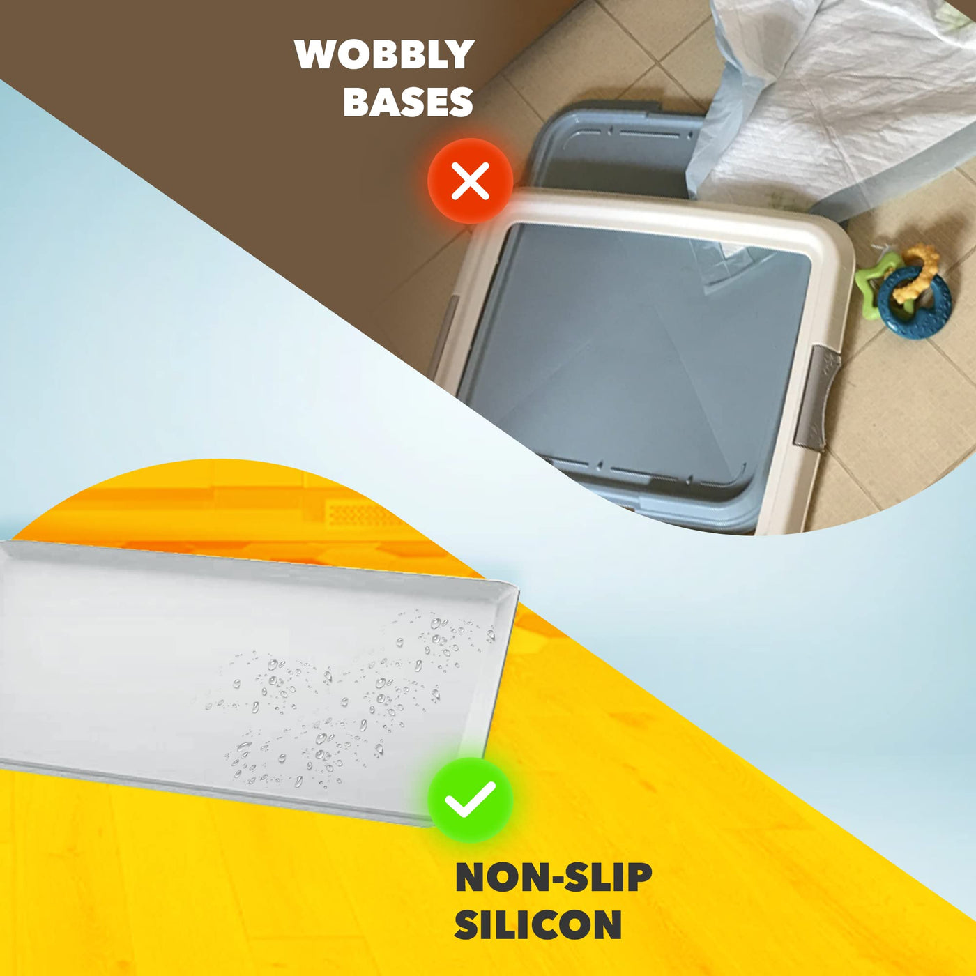 Skywin Tidyfriend Silicone Pee Pad Holder, 2 Pack 24 X 24 Inch No-Spill, Leakproof, Easy-To-Clean Puppy Pad Holder (Grey)