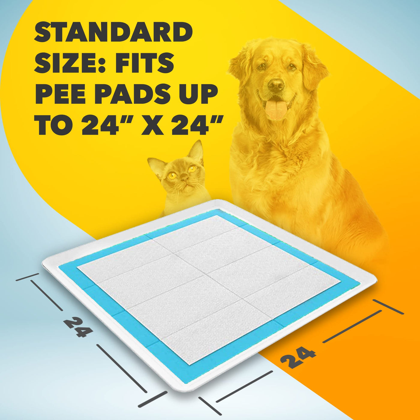 Skywin Tidyfriend Silicone Pee Pad Holder, 2 Pack 24 X 24 Inch No-Spill, Leakproof, Easy-To-Clean Puppy Pad Holder (White)