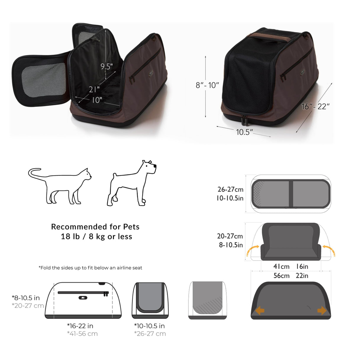 Sleepypod Air - Airline Approved Pet Carrier And Crash-Tested Car Seat For Cats And Dogs Up To 18 Lbs (Dark Chocolate)