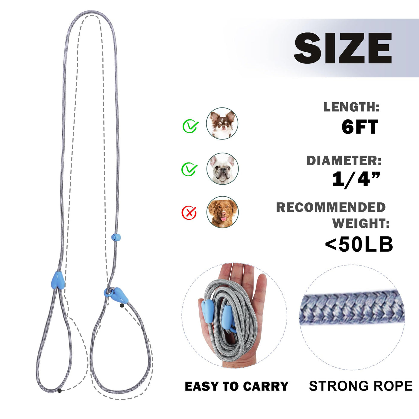 These 1/4'' X6Ft Dog Leashes Are Excellent For The Following Reasons: Powerful Features: The Collar Tightens When Your Dog Pulls And Opens When The Pressure Is Released Comfort Handle: Dog Slip Leash The Curb At The End Of The Handle Is Easy To Grab And Comfortable To Hold Light Enough And Good Quality: These Durable Dog Leashes Are Light Enough For Dogs From 5 Lbs To 60 Lbs, Yet Strong Enough Not To Be Frayed When Dragged Across The Ground Or Chewed Briefly Great Training Partner: No Pull Dog Leash Works Well With Dogs During Training, The Dog Training Leash Is Comfortable And Easy To Use, Perfect For Puppy, Medium Dogs Who Needs Some Gentle Persuasion The Perfect Slip Leash: Affordable , Nice Color, Perfect Length And Lightweight Material: Nylon Color: Blue, Purple, Green, Pink, Rose Red, Lake Green Package Contains: 1X Slip Dog Leash Dimensional Information: 1/4'' X6Ft Onesize Sliding Dog Leash