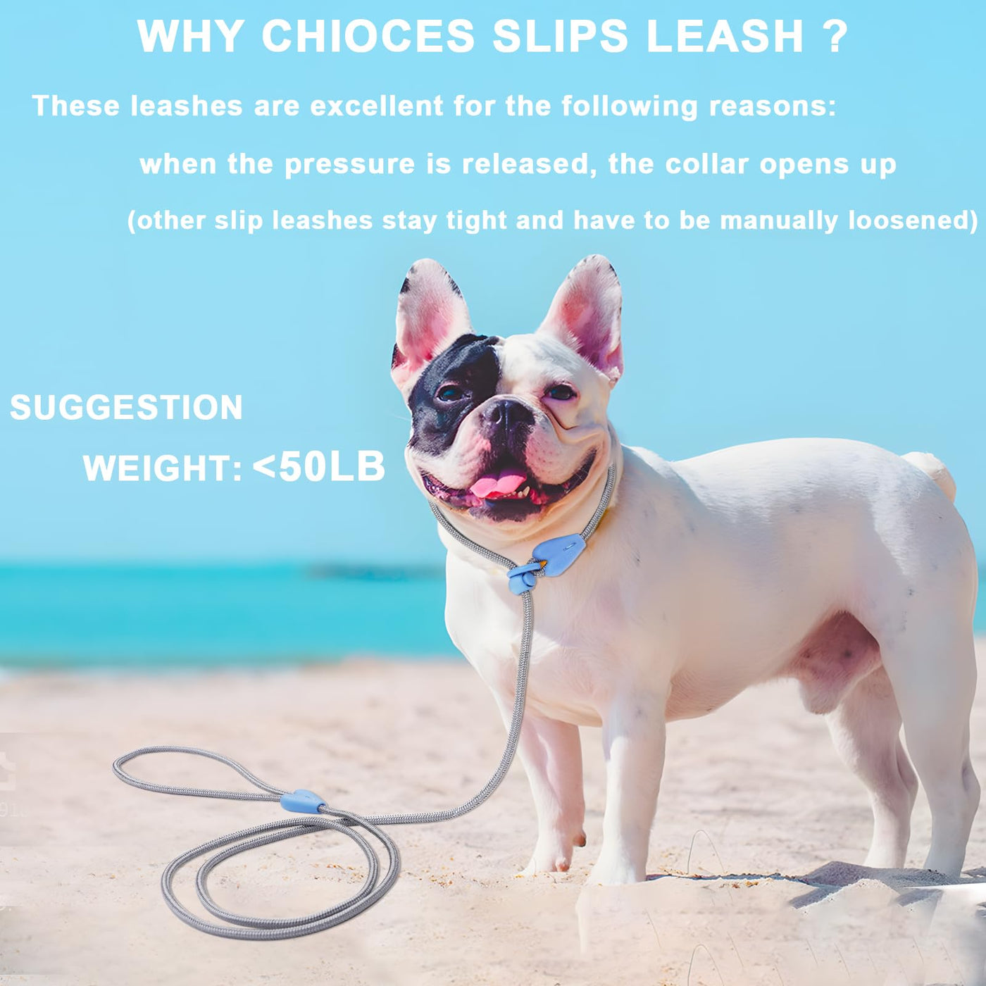 Slip Lead 6 Ft Dog Training Leash - 6 Color Slip Leads For Medium Dogs - No Pull Grey Leash