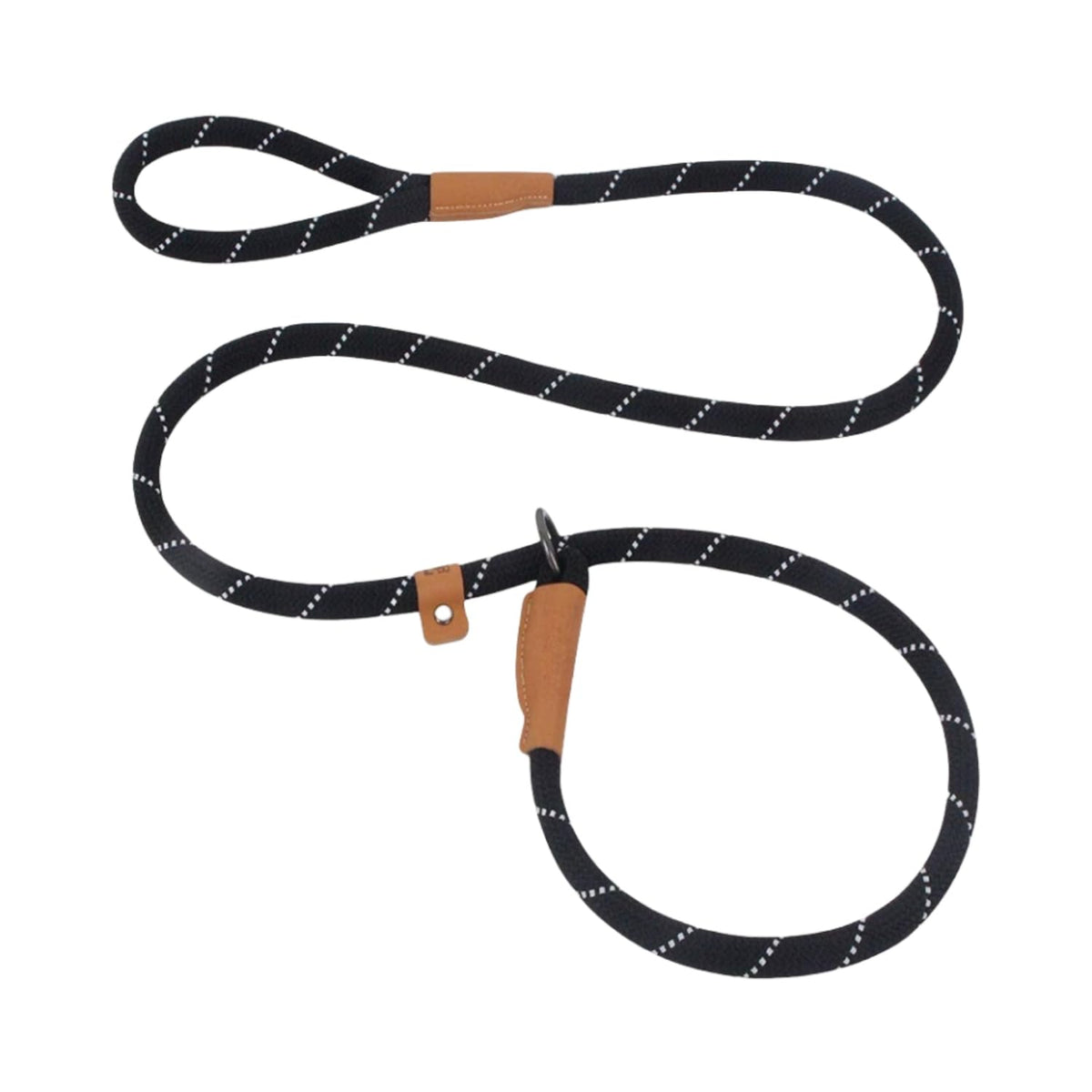 Slip Lead Dog Leash - 5Ft, 2 Sizes - Reflective Mountain Climbing Rope (Black, 3/8)