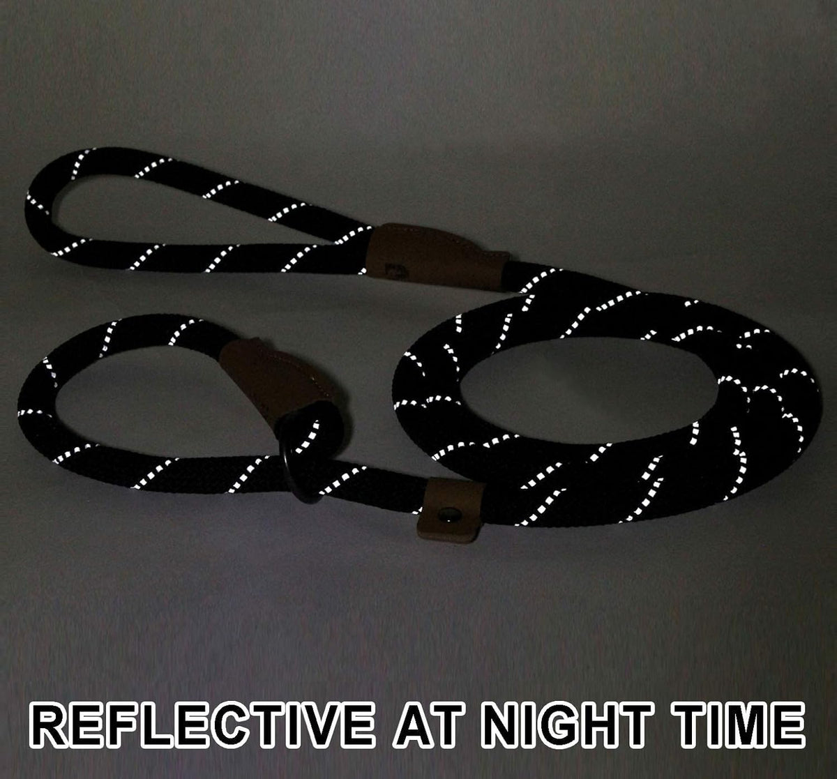 This Slip On Leash Is Designed As Collar & Leash All-In-One Type For Walking, Jogging And Training Dogs. The Leash Is Made With Heavy Duty Braided Mountain Climbing Rope. Polyester Material Has Been Used, Making The Leash Very Lightweight But Durable. Material: Polyester Sizes: Medium - 3/8 Inch X 5 Feet, Large - 1/2 Inch X 5 Feet Colors: Black, Grey, Pink, Turquoise Features: 1. Easy To Use. 2. Enhances Handling. 3. Reflective For Night Time. 4. The Stopper Adjusts The Collar To Fit Any Size Neck And Prevents Slipping Out.
