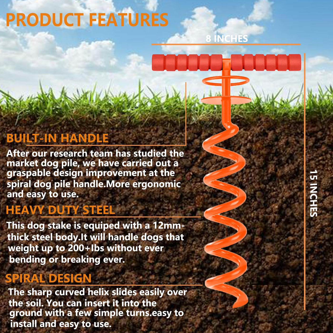 Sliridog'S Huge Stakes Dog Anchor Are Designed To Accommodate The Strongest Dogs, While Providing Your Dog With Free Play Without Fences Or Barrier Systems. Sliridog Is A Premium Pet Strapping Pile With A 360 Rotatable Tangled Dog Strapping Cable. It Is A Heavy-Duty Portable Anchor For Any Dog And Is An Excellent Choice For You: - Built-In Handle Is Matched With The Spiral Shape .More Ergonomic And Easy To Use. -Sturdy Dog Tie-Out Cable,Rotation,No Tangles, Chew Proof. -The Heavy-Duty Dog Anchor Is Designed To Firmly Anchor Dogs Weighing Up To 200 Pounds. -The Upgraded Version Of The Spiral Shape Pile Is Easy To Install, Ideal For Sandy Soil Or Loose Ground.Including Hard Ground - Dog Tie Out Stake Made Of High-Quality Galvanized Solid Steel,Durability And Sturdiness. -The Upgraded Version Of The Buckle Rotation Lock Clip Adds The Necessary Safety, Excellent Strength And Durability. Comes With A Mobile Lock To Prevent Shedding, 360 Rotation And No Tangles. -Heavy Anti Corrosive Primer Can Maintain A Longer Service Life -A Great Choice For Yards, Parks, Beaches Or Campgrounds-- Package Included :--Spiral Built-In Handle Dog Tie Out Stake -- Double Spiral Blade With Built-In Handle, Easy To Install And Use.To Cancel Any Side To Side Movement,Safest Option.-- Blue Rotating Dog Cable -- Bright Color, Chewy, Rotating, No Tangles. Buckle Lock Clip, Safer And More Reliable-- Color Box -- Pack All Items In Neat And Stylish Boxes, The Best Gifts For Loyal Partners
