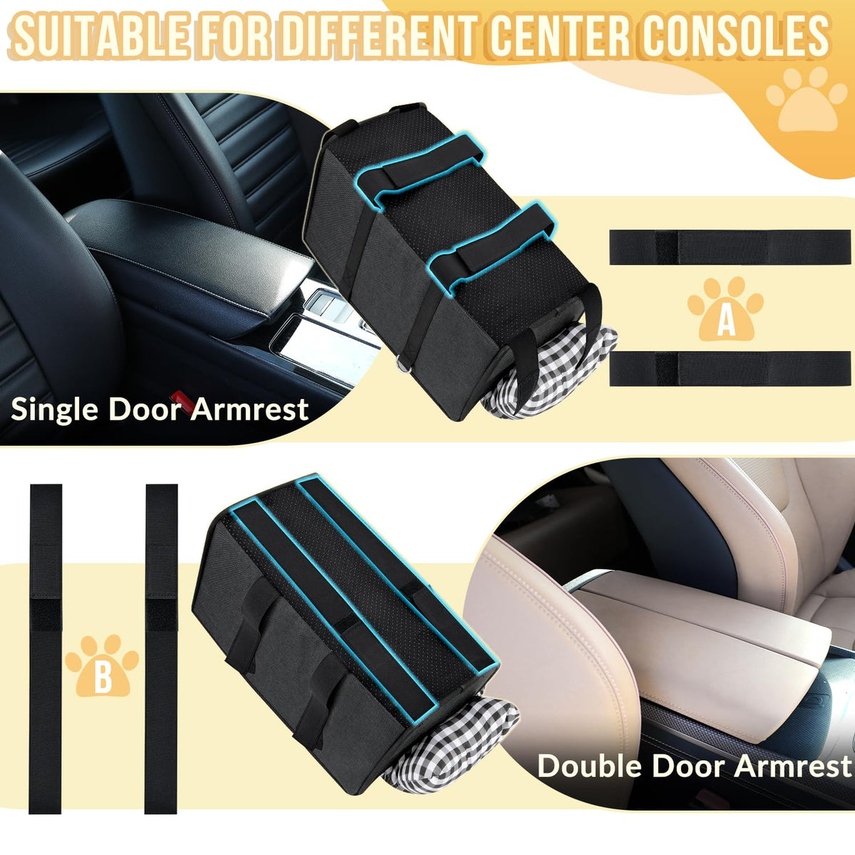 Slowton Console Dog Car Seat - Portable Dogs Armrest Booster Seat For Small Dog, Anti-Collapse Pet Car Seat With Soft Cushion Safety Belt, Support Pet Up To 11Lbs (Black)