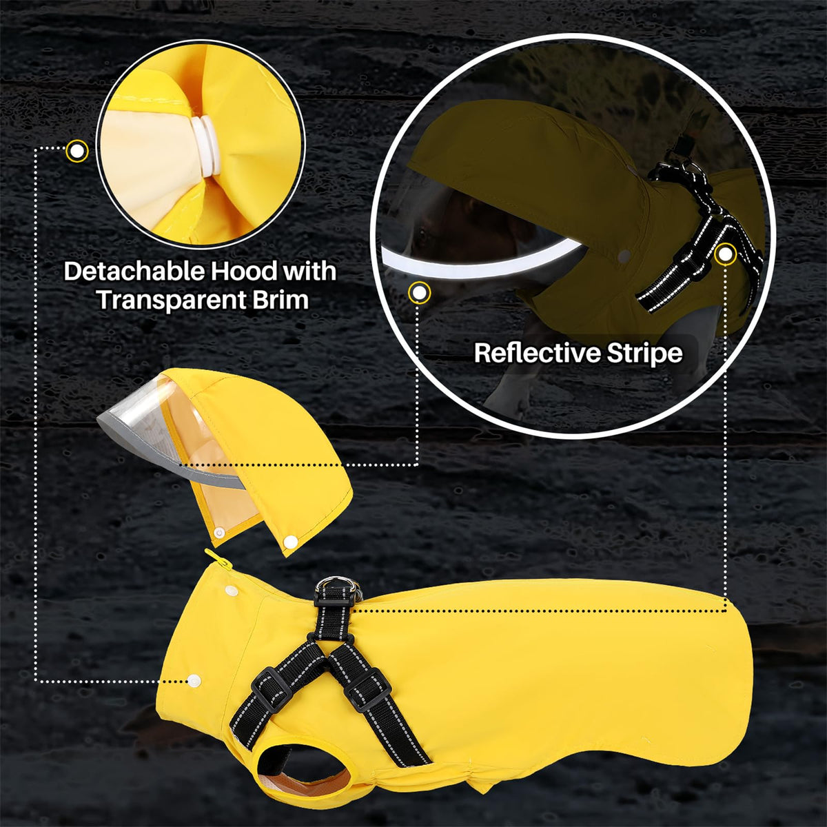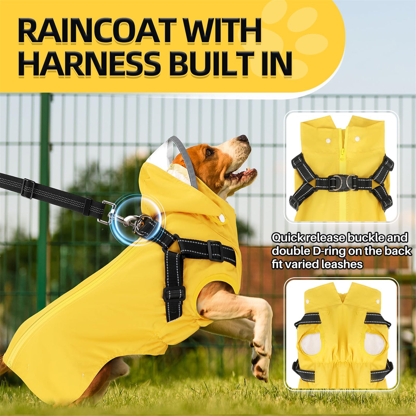 Let The Dog Wear A Waterproof Raincoat And Go Outdoor Adventure Together! Outstanding Feature: (1)With Harness Build In -- Convenient And Useful. (2)Waterproof Rain Jacket -- Have Fun On Rainy Days. (3)Clear Hood -- It Won'T Block The View. (4) Reflective Brim -- It'S Safer At Night. (5) Easy To Wear -- With Adjustable Zipper And Buckles. (6) 7 Sizes Available -- Fit For Xs, S, M, L, Xl, Xxl, 3Xl Dogs. Size Chart: Size----------Chest--------------Back-----------Neck Xs--------15.7-17.3 In ---------14.2 In ----------13.4 In S----------17.3-18.9 In --------16.5 In --------15 In M---------18.9-20.9 In ---------18.9 In --------16.5 In L----------20.9-23.2 In ---------20.5 In --------18.9 In Xl---------23.2-26 In ---------23.2 In --------21.2 In 2Xl-------26-29.1 In ----------26.4 In --------22.8 In 3Xl-------29.1-32.3 In ----------29.5 In --------26.4 In How To Choose The Right Size? 1)Chest Size ? 2)Back Size ? 3)Neck Size Please Measure The Pet'S Chest, Back Length And Neck Circumference First, Then Refer To The Size Table. Note:Manual Measurement May Have Error. When Choosing The Size, Please Prioritize The Chest Circumference, Add Up To 2 Inches To The Chest Size To Prevent The Rain Coat From Being Too Tight Or Too Loose. Specification: Product: Slowton Dog Raincoat With Harness Build In Material: Polyester + Mesh Cloth Size: Xs, S, M, L, Xl, 2Xl, 3Xl Included Items: 1 Dog Rain Coat + 1 Removable Hood
