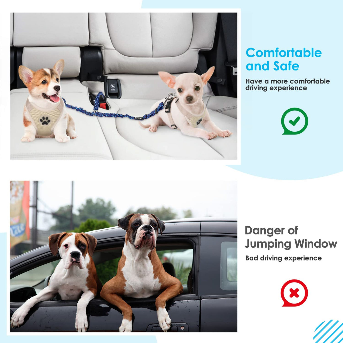 Outstanding features of SlowTon Double Dog Seatbelt: 1. The adjustable length of this seat belt makes it allows your dog to sit, stand, lie down or turn around in the vehicle without disturbing the driver. 2. These seat belts are suitable for dogs of different sizes because the strap is springy and adjustable.