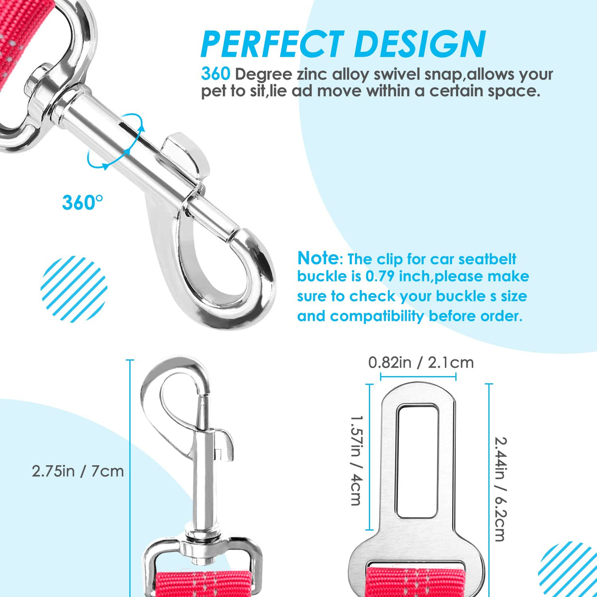 Warm Tips: 1. Please check your buckle's size and compatibility before purchasing. 2. It’s perfect for use in the back seat to prevent dogs reach the driver’s side.