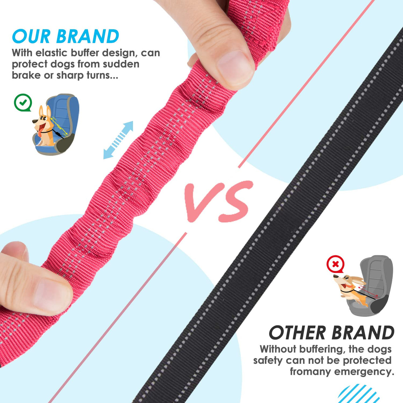 Outstanding features of SlowTon Double Dog Seatbelt: 1. The adjustable length of this seat belt makes it allows your dog to sit, stand, lie down or turn around in the vehicle without disturbing the driver. 2. These seat belts are suitable for dogs of different sizes because the strap is springy and adjustable.