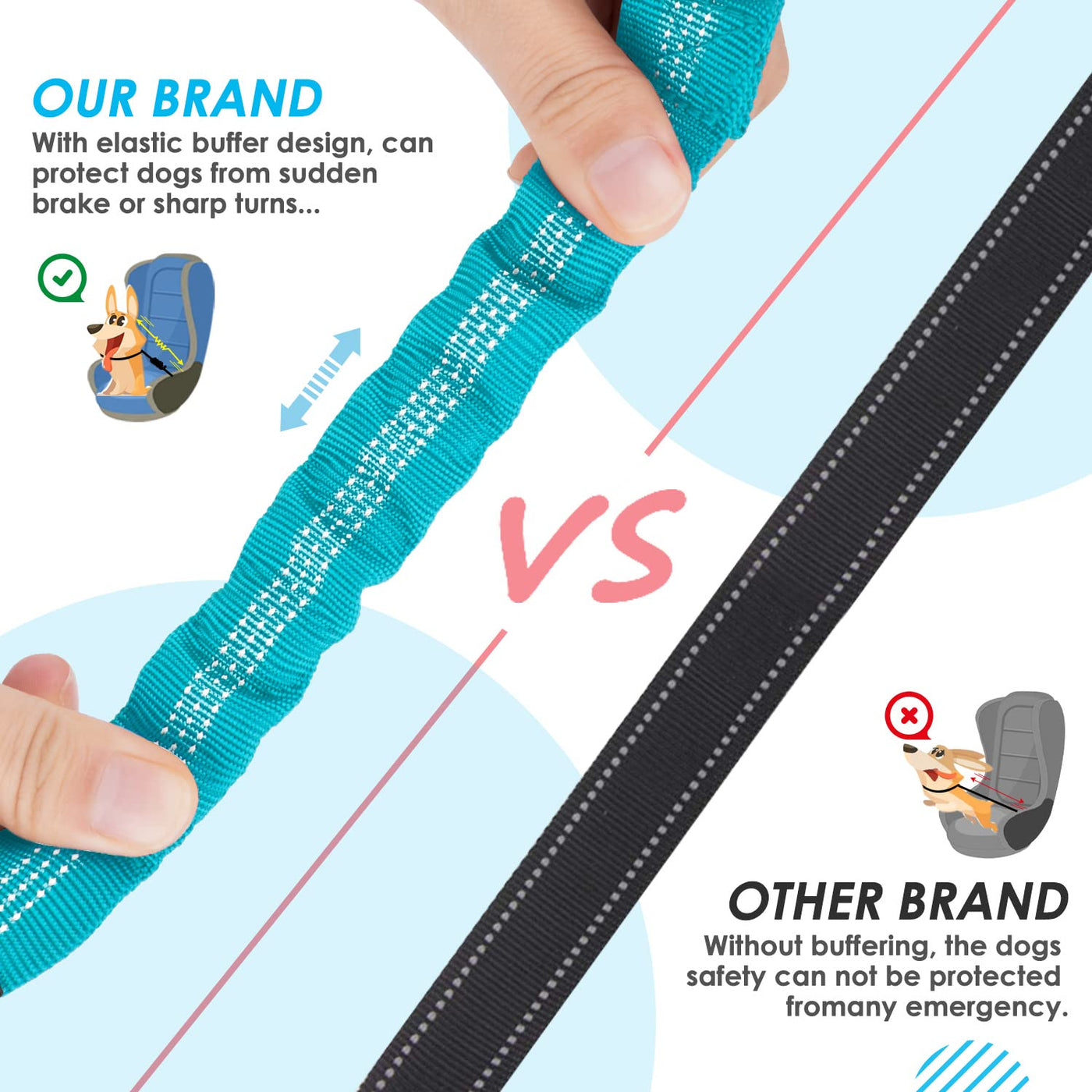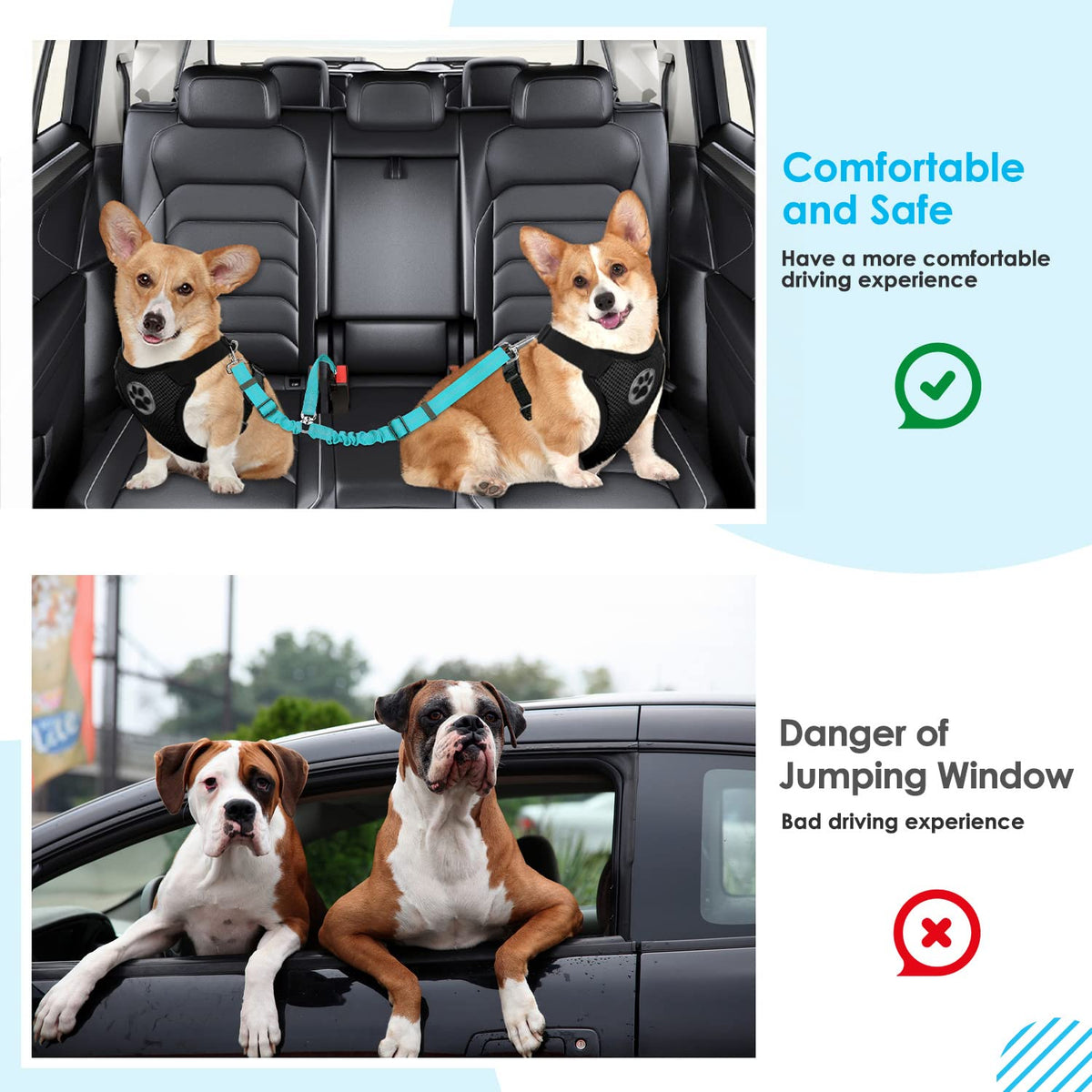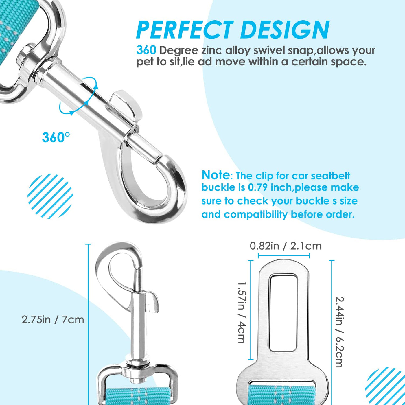 Slowton Dog Seat Belt, Double Dog Seatbelt Adjustable Vehicle Safety Leash With Elastic Bungee Buffer, Reflective No Tangle Y Shape Two Dog Harness Seat Belt Splitter For Pets Car Trip (Mint Blue, M)