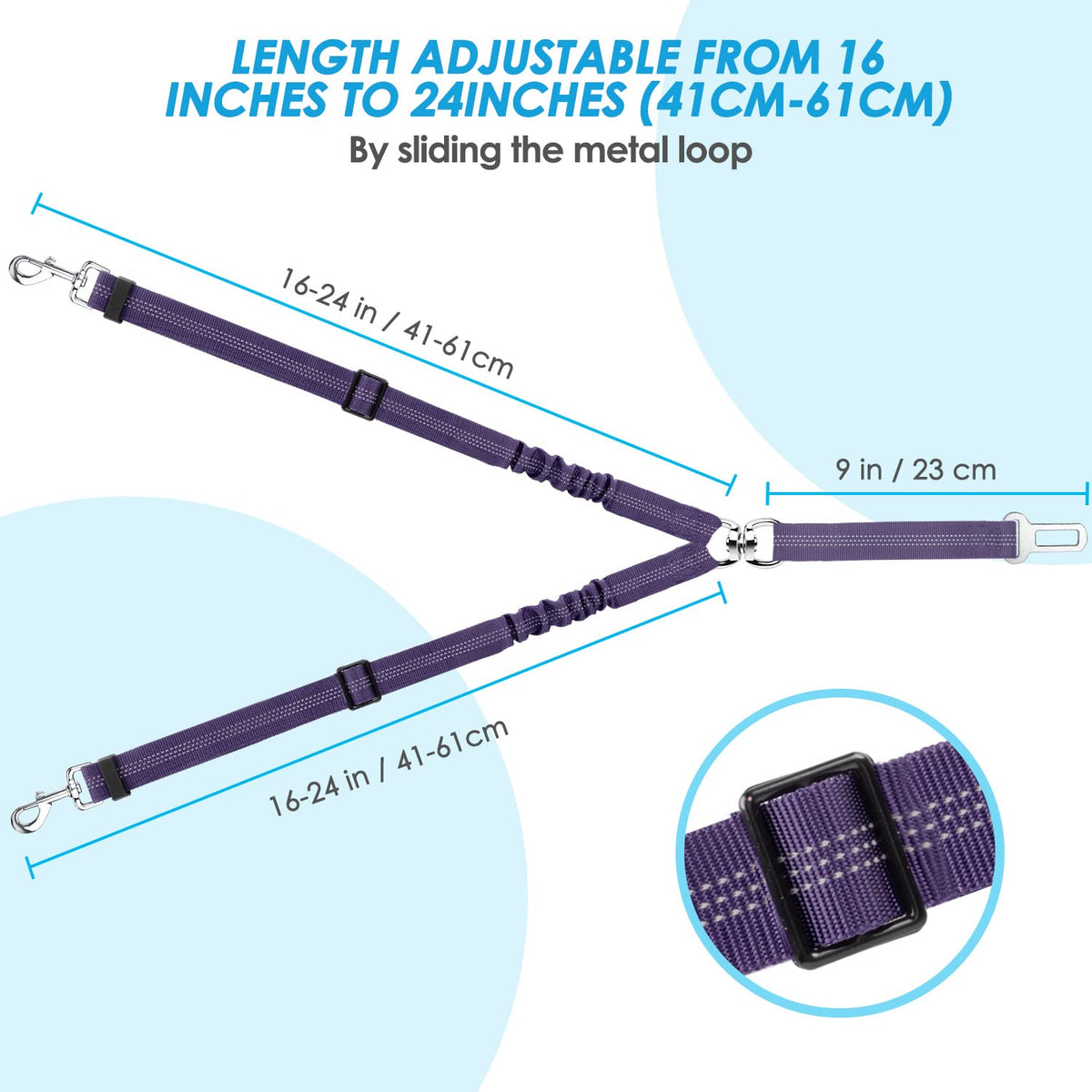 Slowton Dog Seat Belt, Double Dog Seatbelt Adjustable Vehicle Safety Leash With Elastic Bungee Buffer, Reflective No Tangle Y Shape Two Dog Harness Seat Belt Splitter For Pets Car Trip (Purple, S)