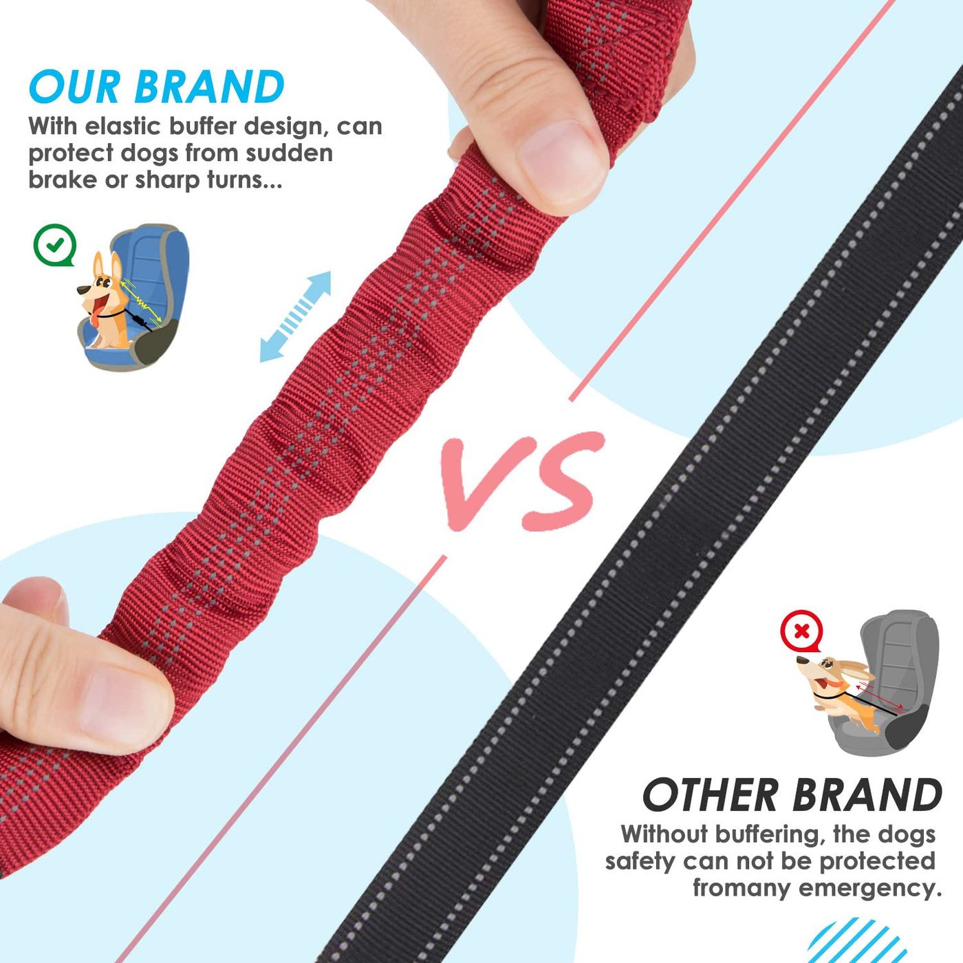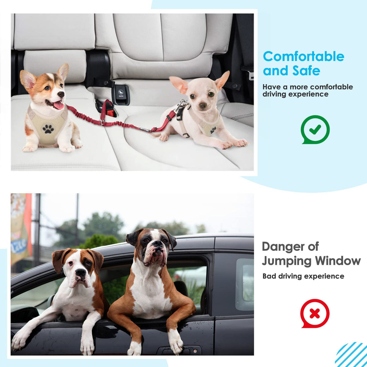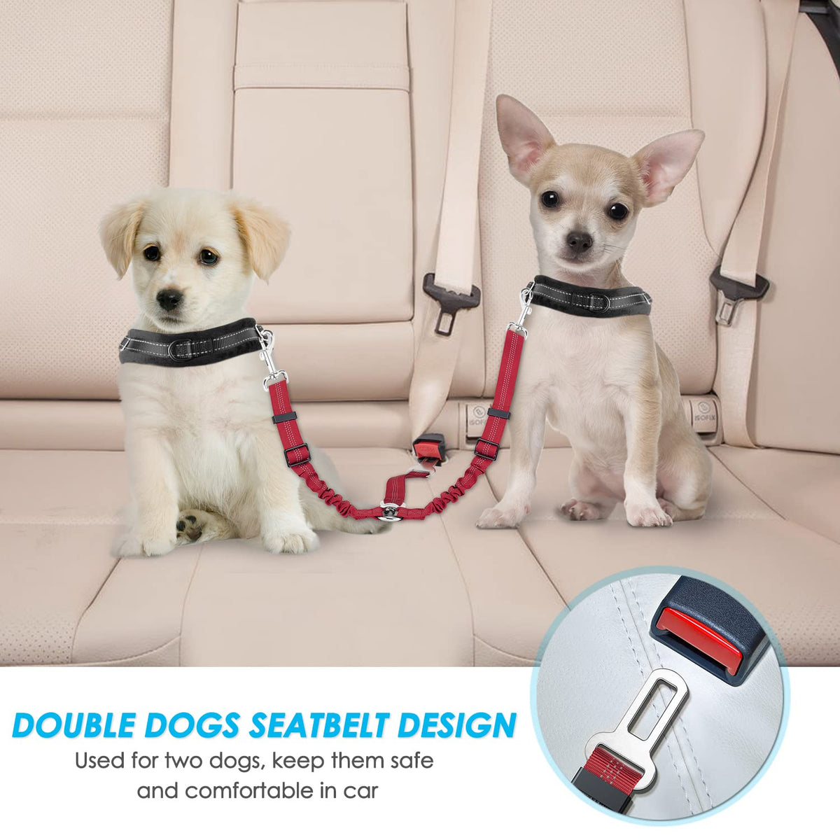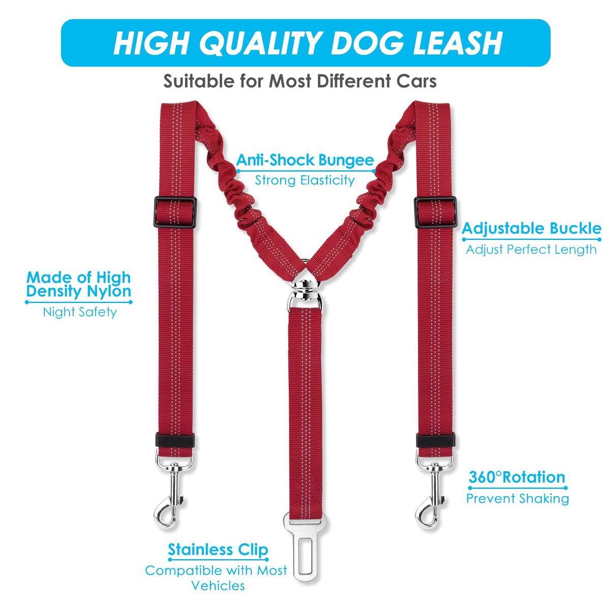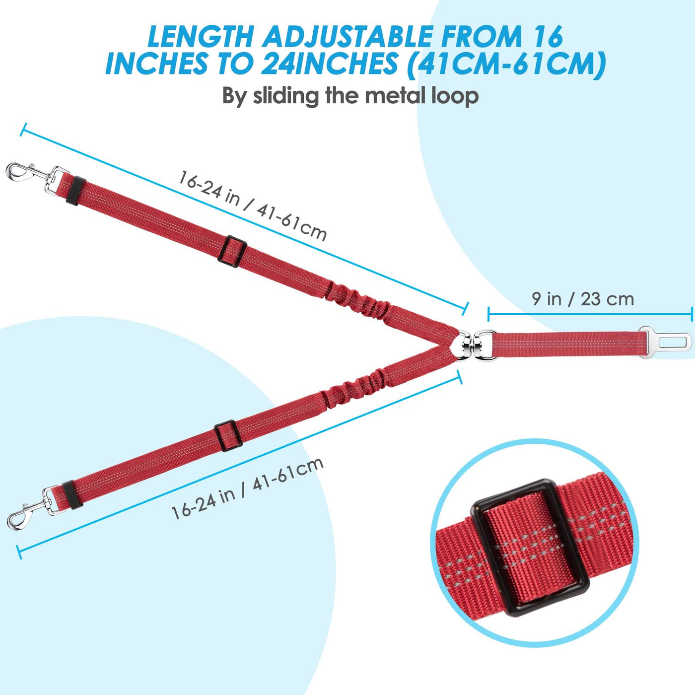 Slowton Dog Seat Belt, Double Dog Seatbelt Adjustable Vehicle Safety Leash With Elastic Bungee Buffer, Reflective No Tangle Y Shape Two Dog Harness Seat Belt Splitter For Pets Car Trip Travel (Red, S)