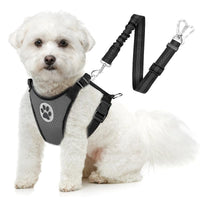 Slowton Dog Seat Belt Harness For Car, Dog Car Harness Adjustable Mesh Breathable & Dog Seatbelt Safety Tether With Elastic Bungee For Small Medium Large Pets(Grey, Double Clip, Xxxs)