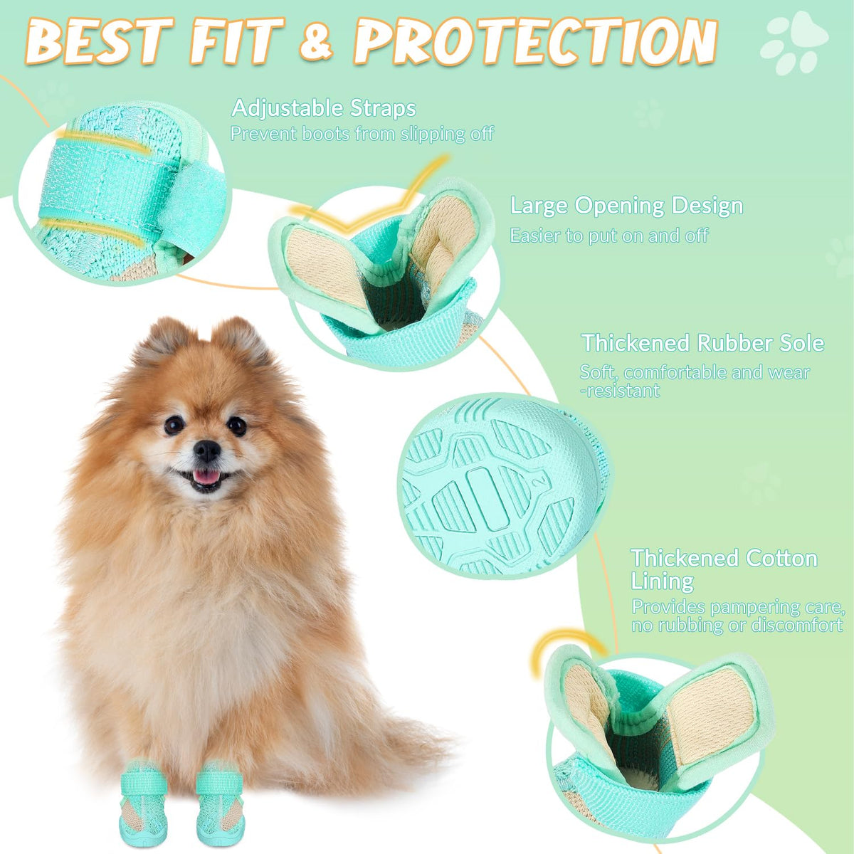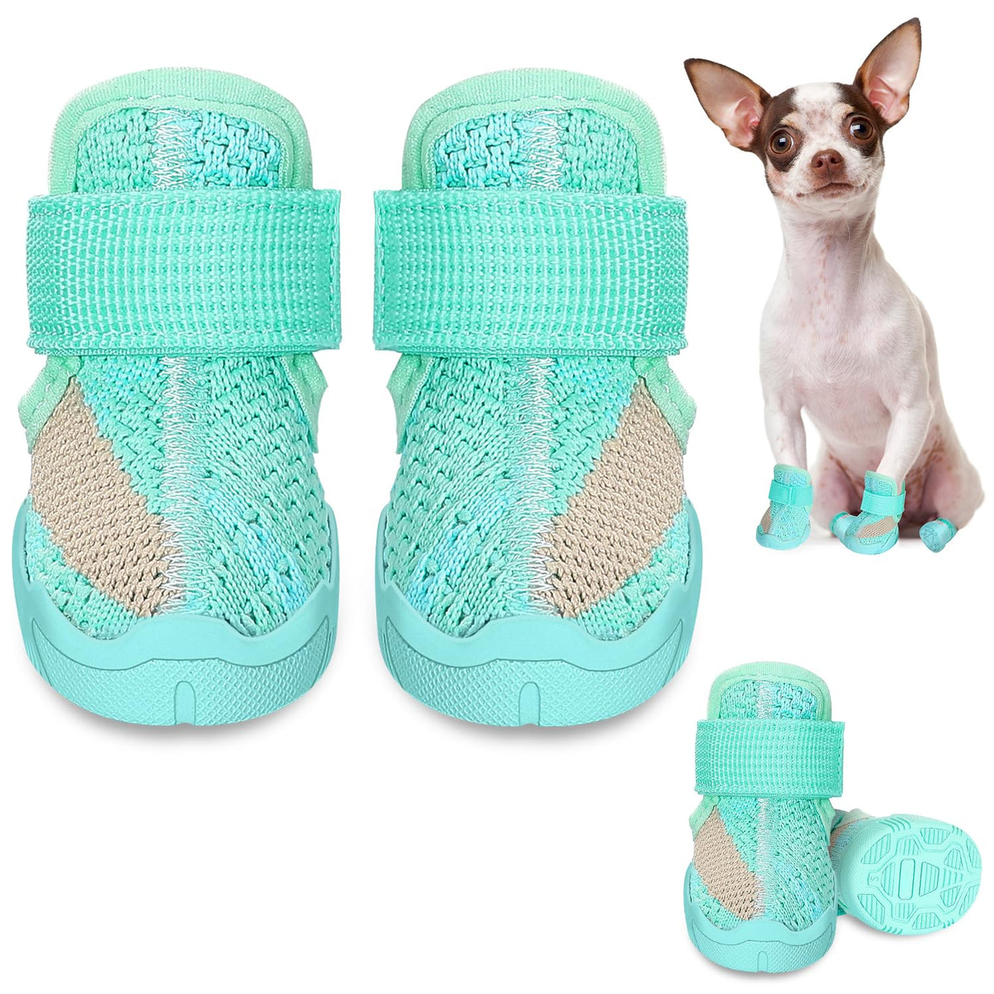 Slowton Dog Shoes For Small Size Dogs - Soft Rubber Sole Dog Boots & Paw Protector For Summer Hot Pavement Winter Snow, Breathab