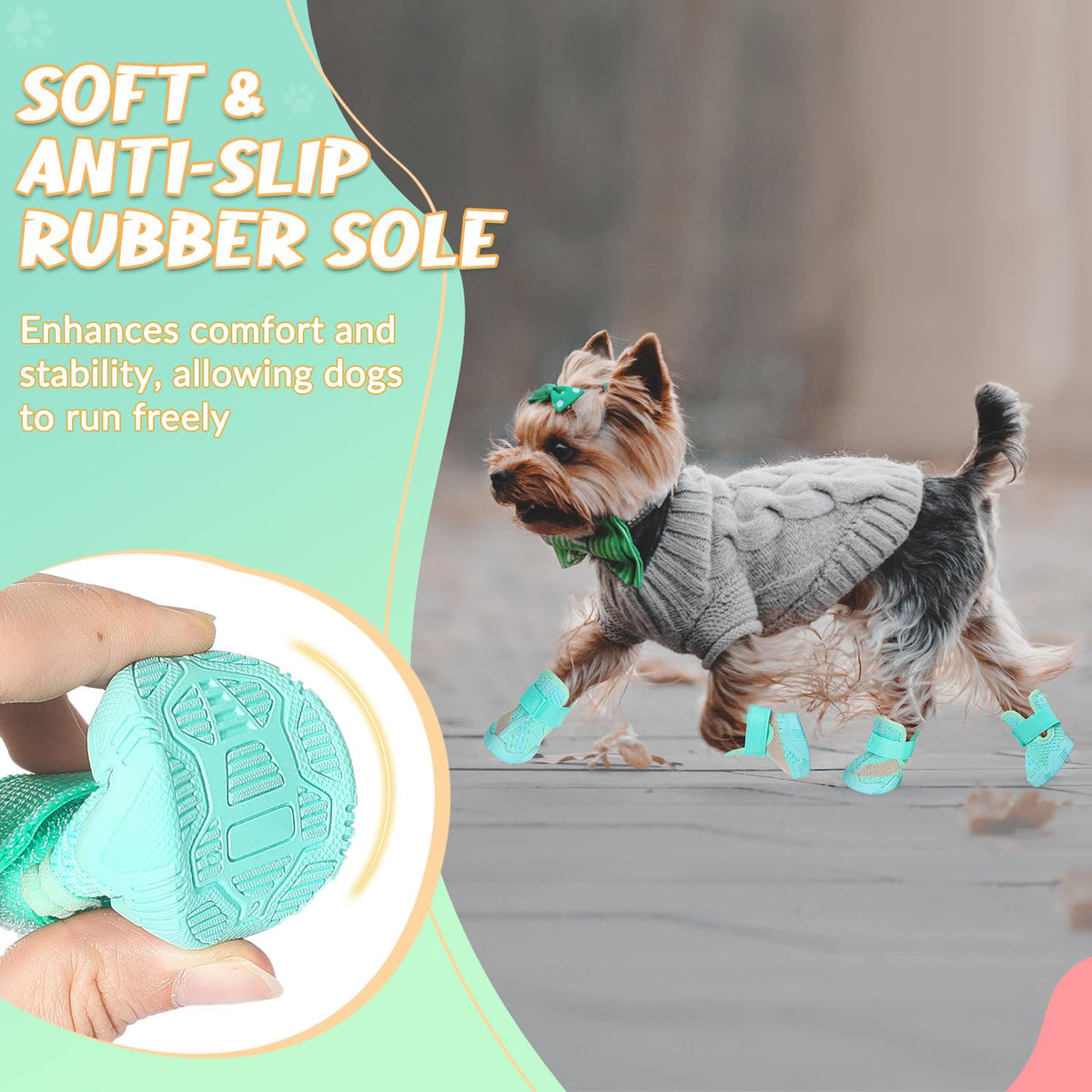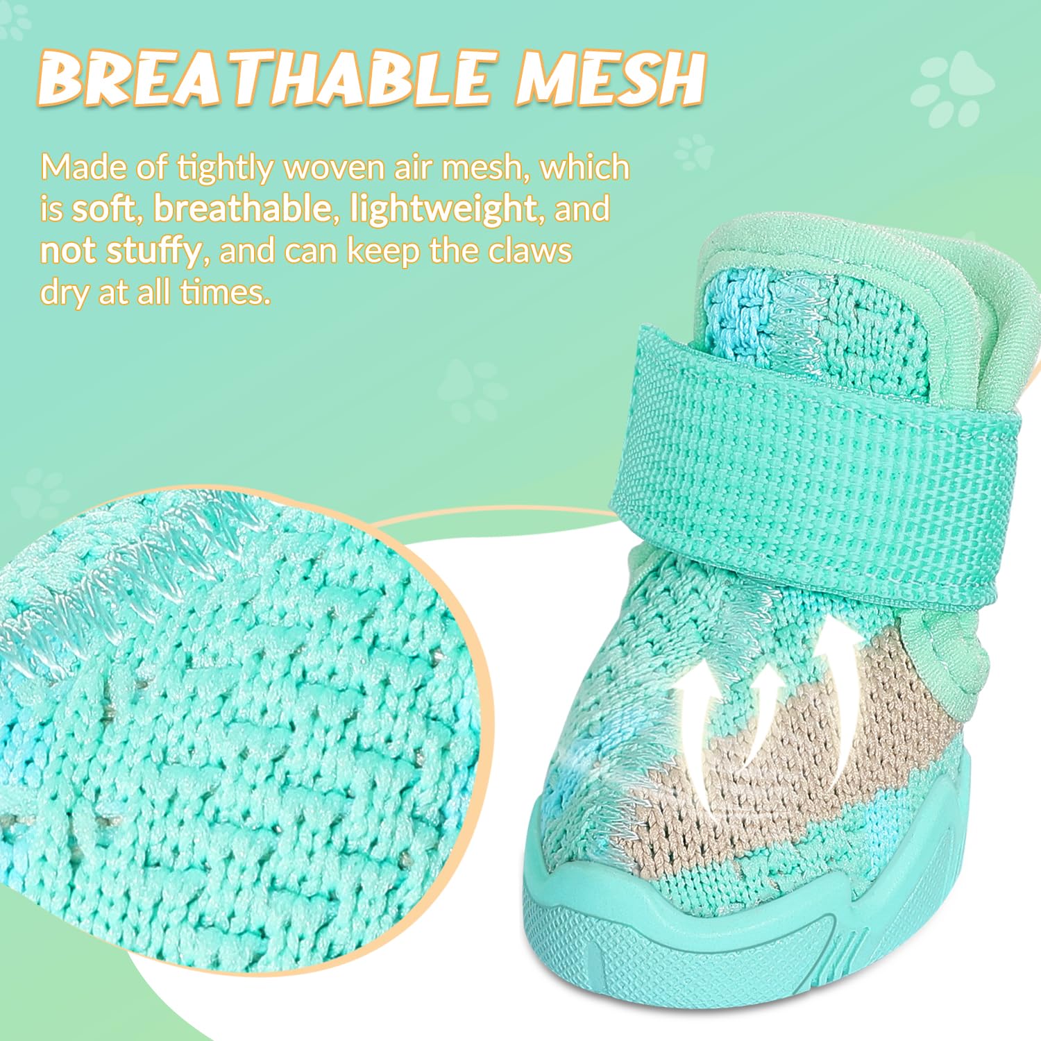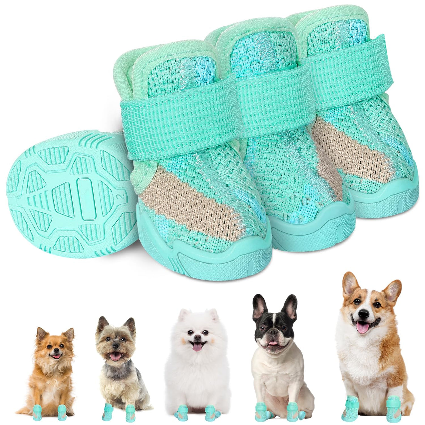 Stylish, Breathable, And Easy To Put On, These Dog Shoes Protect Your Dog'S Paws From Hot Pavements And Sharp Objects. With A Durable, Non-Slip Rubber Sole And Comfortable Mesh Upper, They Ensure Safety And Comfort. Available In Five Sizes For The Perfect Fit. Outstanding Features Of The Sog Shoes For Small Dogs: 1. Specially Designed For Small Dogs: Cute And Stylish, These Shoes Protect Your Dog'S Paws From Hot Pavements And Sharp Objects Like Stones And Glass. 2. Comfortable And Breathable Upper: Made Of Tightly Woven Air Mesh Fabric, These Shoes Are Soft, Comfortable, And Breathable, Preventing Friction Or Chafing On Your Dog'S Paws. 3. Easy To Put On And Take Off: Featuring A Wide Opening And A Secure Hook-And-Loop Strap, These Shoes Are Simple To Put On And Remove, With A Snug Fit That Prevents Slipping. 4. Durable Non-Slip Sole: The Soft Rubber Sole Provides Strong Stability, Grip, And Wear Resistance, Protecting Your Dog From Slipping And Injury, Especially On Wet Floors. Size Options For Best Fit: Available In Five Sizes Based On The Inner Diameter Of The Boots, Ensuring The Perfect Fit By Measuring Your Dog'S Paw Width Carefully. Specification: Color: Green, Black Gray, Pink Material: Mesh Fabric + Rubber Sole Size: 1, 2, 3, 4, 5 Product Weight: 4.2Oz Package: 4 Pack Of Dog Shoes