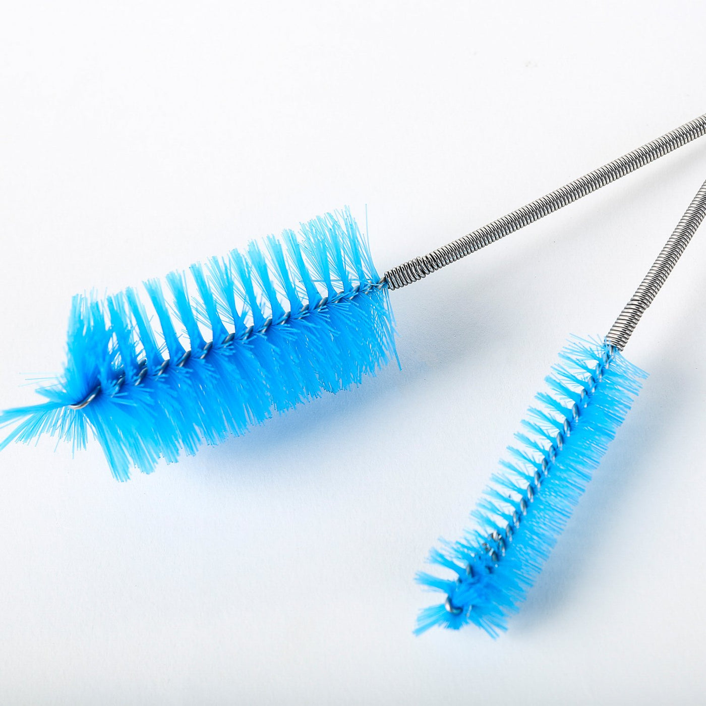 Q: How do I clean small diameter pipes with this brush?A: To clean small diameter pipes, use a mild detergent and warm water, then gently work the brush back and forth inside the tube while keeping it as straight as possible to avoid damage.