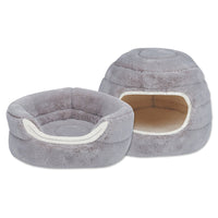 Made of super-soft fabric for ultimate comfort, Slumber Pet Cuddler Beds are perfect for small dogs and cats.Fold the sides down to create a bolster bed with high wallsPull the top up to create a cozy hideaway cave for pets who love to nestRemovable inner cushion offers added supportMaterial: 100% polyesterSize: Bed measures 16'D x 12'HCare: Machine wash cold on gentle cycle. Tumble dry low.Colors: Blush and Dove