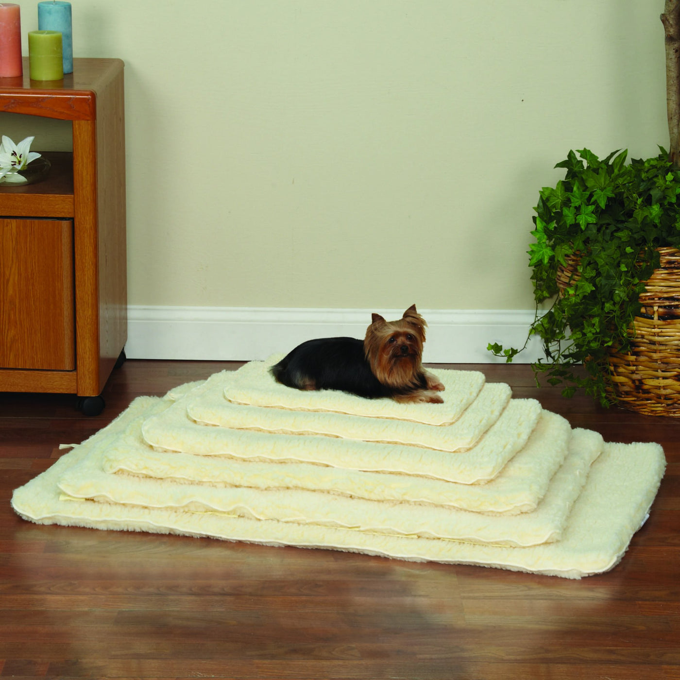 Slumber Pet Double-Sided Sherpa Mats feature heavenly sherpa with thick pile that is double-sided for exceptional comfort and warmth.Versatile bedding can be used in cages or crates, in cars, to cover furniture, or as an extra bedNeutral color corresponds with popular home decorsMachine washable for easy careMaterial: Acrylic/polyester sherpaSize:X-Small measures 17¾'L x 11¾'WSmall measures 23¾'L x 16¾'WMedium measures 29¾'L x 18¾'WMedium/Large measures 35¾'L x 22¾'WLarge measures 41¾'L x 27¾'WX-Large measures 47¾'L x 29¾'W