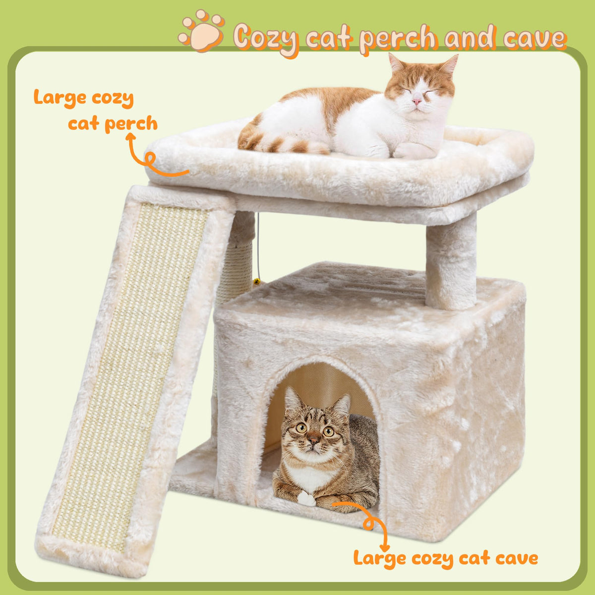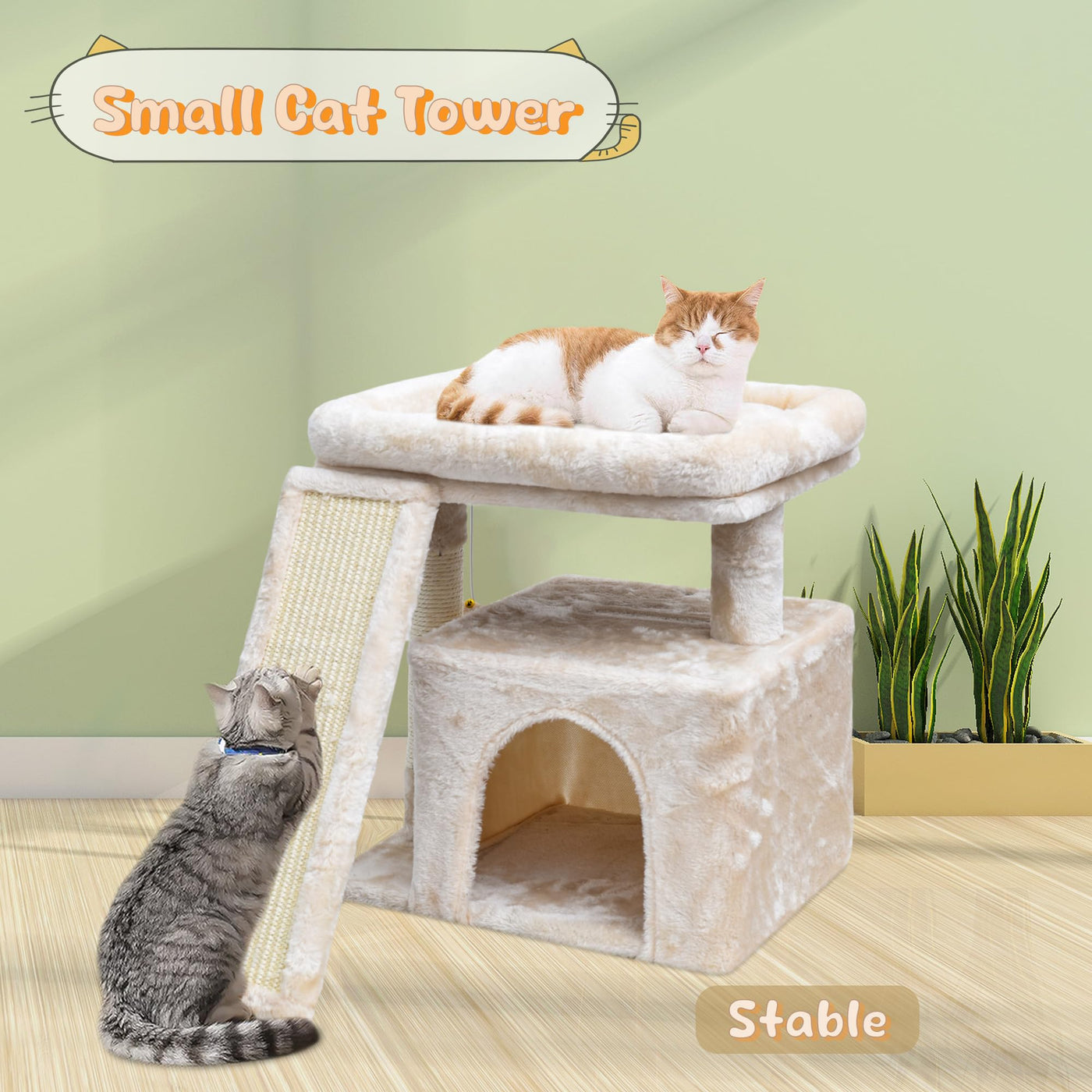 Natural Healthy Material: This Small Cat Tree Is Made Of Thick Cat Posts And Wrapped With Natural Sisal Rope On The Outside, Which Satisfies Your Cat'S Scratching Nature And Is Very Durable. Cat Condo&Kitten Bed: The Small Cat Tower Is A Cat Hideaway, A Place For Shy Kittens To Hide, And Perfect For Older Cats Who Have Trouble Jumping And Kittens Who Are Still Figuring Out Their Jumping Know-How. Both The Cat House And The Top Cat Tree Bed Log Can Be Curled Up So They Can Use The Modern Cat Tree Tower Without Fighting For Space. Soft Material: The Surface Of The Cute Cat Tree Is Covered With High Quality Plush, Which Is Very Soft And Cozy, Providing Your Kitten With A Super Soft And Comfortable Sleeping Or Resting Experience Multifunctional Entertainment Center: With A Hanging Teddy Ball (Replaceable) That Cats Can Bat And Chase, A Cat Scratching Post To Scratch At, And A Ramp To Scratch Or Climb Around On, The Casa Para Gatos Provides Hours Of Exercise And Self-Entertainment For Cats. Easy To Clean: Easily Removes Hair, Dust Or Food Crumbs From The Cute Cat Tower With A Lint Roller Or Vacuum Cleaner, Keeping Your Cat Houses & Condos Clean. Colors: This Black/Gray Kitten Scratching Post Cats Will Blend Perfectly With Your Room D Cor As A Piece Of Modern Cat Scratching Post With Bed. The Perfect Gift For Your Kitten And Your Cozy Home! Multi-Scenario Use: 1.Because The Casa Para Gatos Is Small Enough To Put In A Travel Trailer To Go Camping. 2. Perfect Window Cat Scratch Post For Indoor Cats As Well: The Cat Tower Small Can Be Placed In Front Of A Window So That Your Cat Can Lie In The Sun And Enjoy The View Out Of The Window. 3.The Cama Para Gatos Can Be Placed In A Corner Of The Living Room 4.The Casa Para Gatos Can Be Placed Next To The Desk 5.The Cat Climbing Tower Can Be Placed Next To The Bedroom Bed, Which Will Make It Easy For The Kitten To Climb Up On The Bed So That It Can Look Out Of The Bedroom Window. 6.The Cat Tree Small, Can Also Be Used As An Extra Complementary Part Of The Cat Tower For Indoor Cats