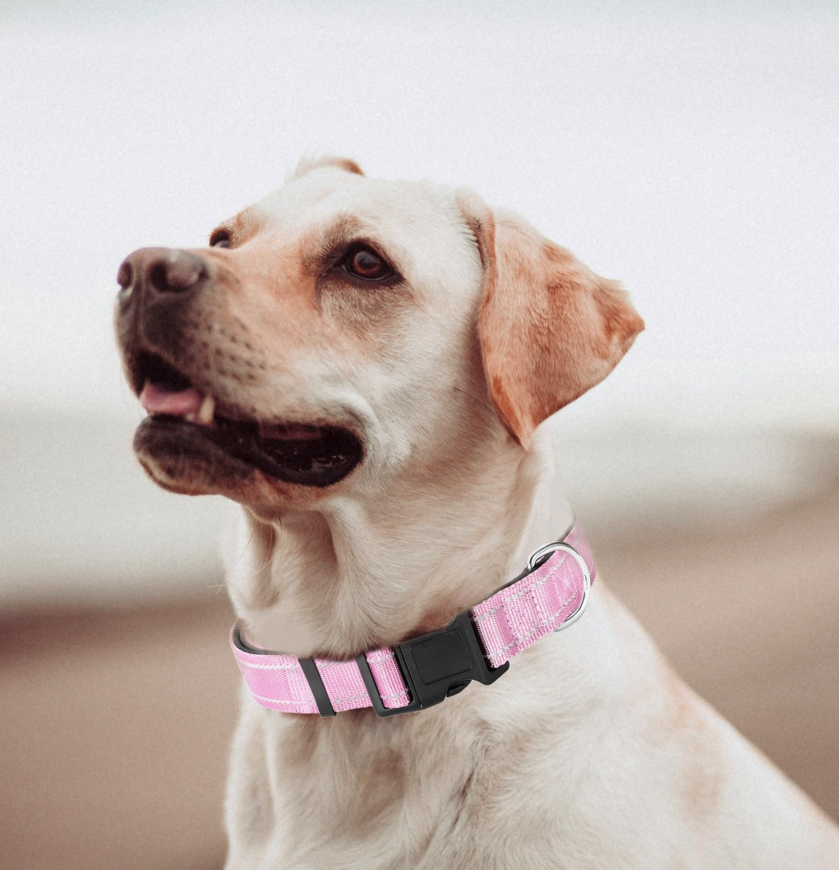 Small Dog Collar, Reflective Pet Collar With Buckle Adjustable Safety Nylon Collars For Small Medium Large Dogs, Light Pink